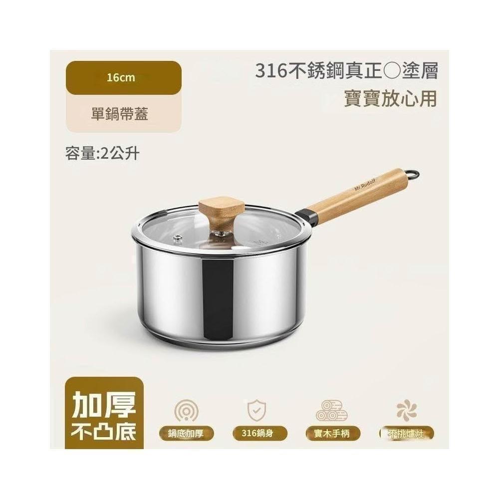 Felsted 菲仕德316不銹鋼無塗層牛奶鍋 不粘鍋 輔食鍋 小奶鍋 小湯鍋 煮鍋 蒸鍋 蒸煮鍋 鍋具 蒸籠(16cn 18cm 20cm)