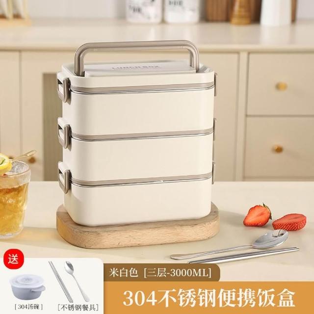 Felsted 菲仕德長方形304不銹鋼飯盒多層保溫飯盒(餐盒 便當盒 加熱飯盒 分格保溫盒 午餐盒 保鮮盒 儲存盒 食盒 送餐具+湯碗)