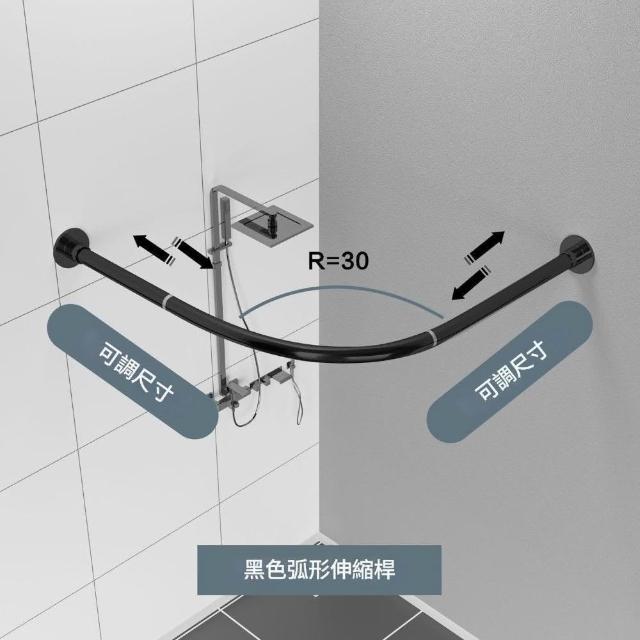 浴室可伸縮弧形打孔免打孔兩用浴簾桿(伸縮桿 門簾桿 L型桿 弧形桿 衣架桿 掛簾架)