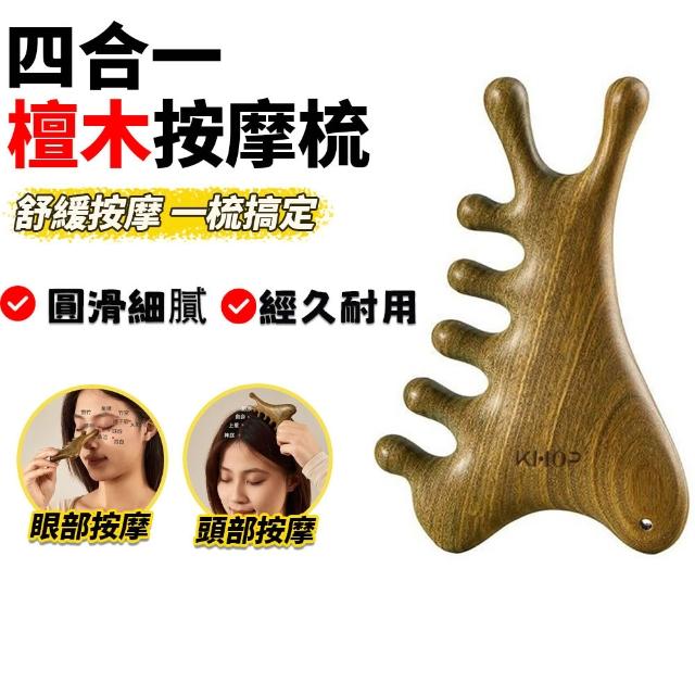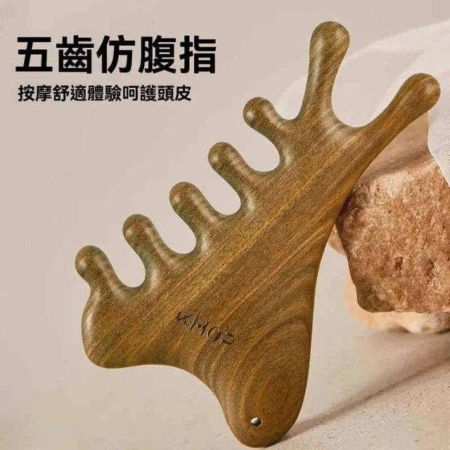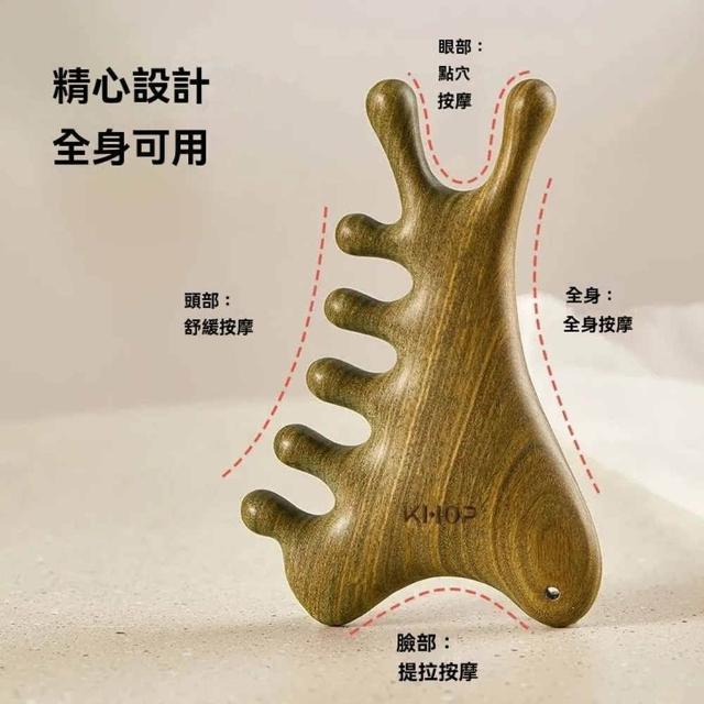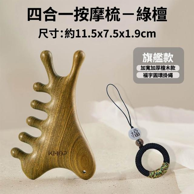 Felsted 菲仕德台灣現貨 四合一綠檀木按摩梳 經絡梳 檀木梳(加厚加大 實木雕刻 五齒按摩 全身可按 可掛件)