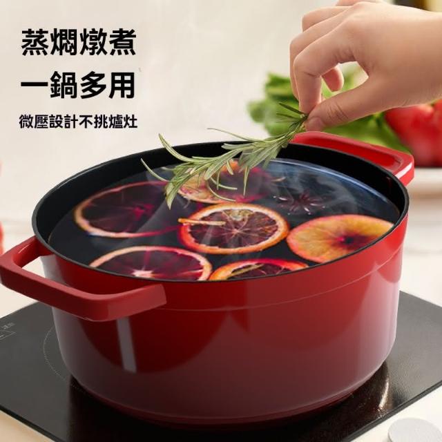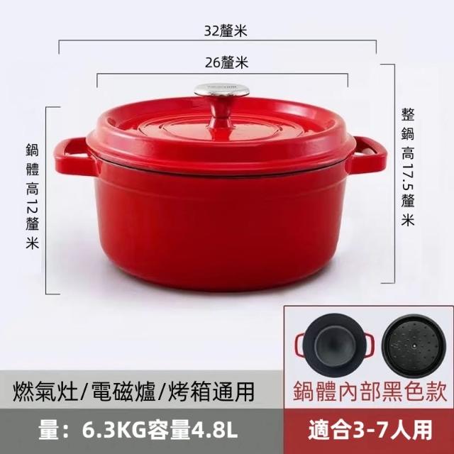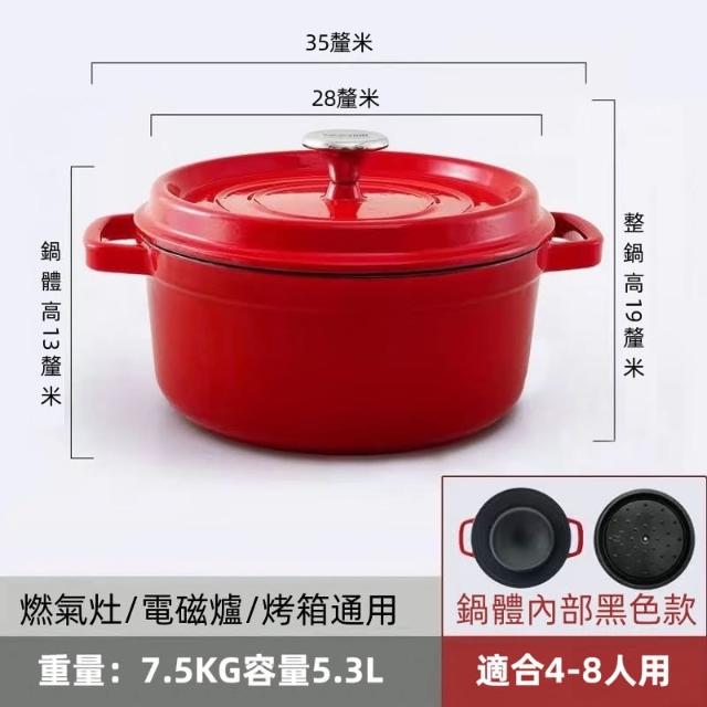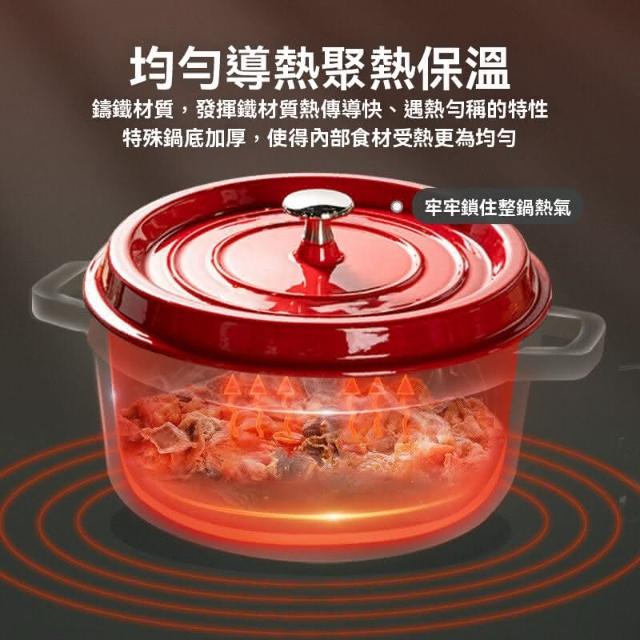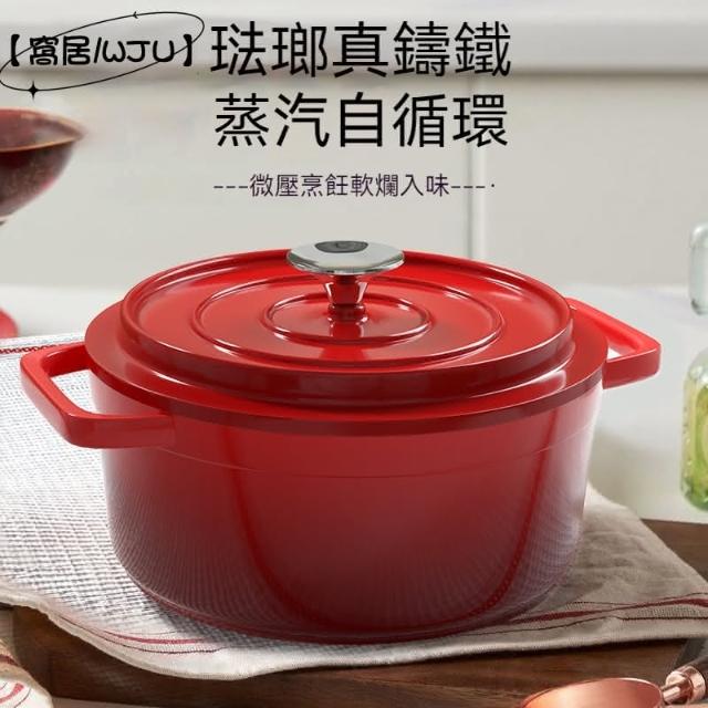 窩居/WJU 5L大容量鑄鐵珐琅鍋 陶瓷不粘鍋 家用燉肉煲湯鍋 燜燒養生鐵鍋 搪瓷鍋通用鍋具