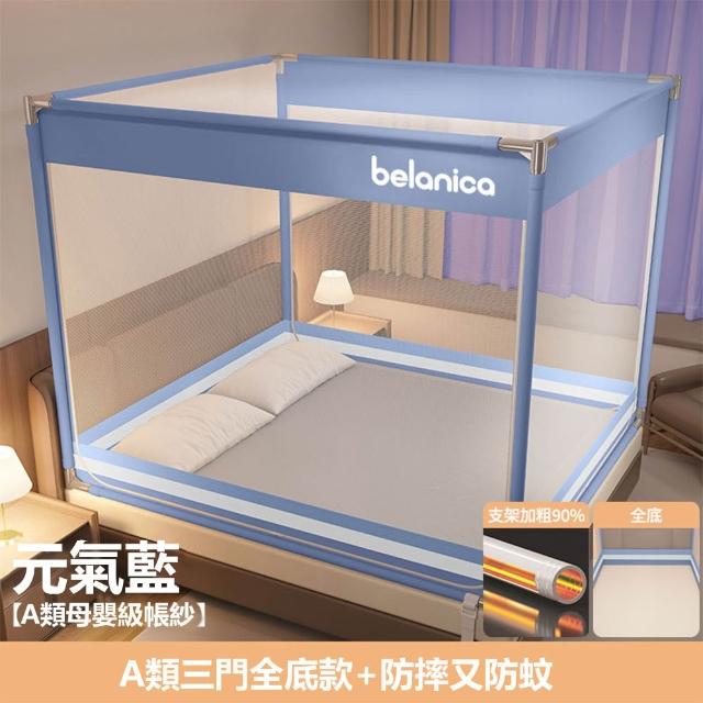 A類防摔蚊帳 三開門 加粗加厚 單人雙人床 家用臥室 免安裝 蒙古包全底防掉床