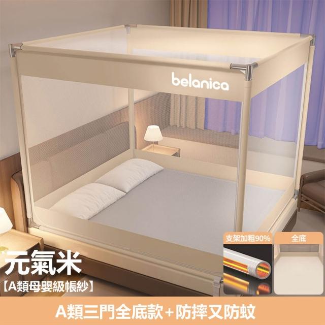 A類防摔蚊帳 三開門 加粗加厚 單人雙人床 家用臥室 免安裝 蒙古包全底防掉床