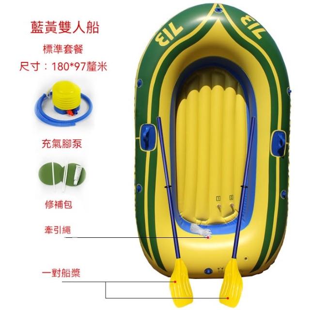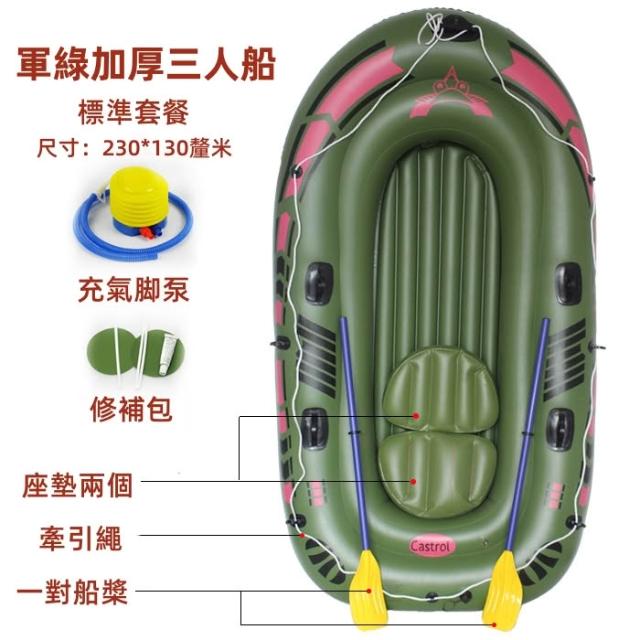 橡皮艇 加厚充氣船 雙人三人皮划艇 耐磨氣墊釣魚船 救生捕魚艇 衝鋒舟 贈充氣腳泵
