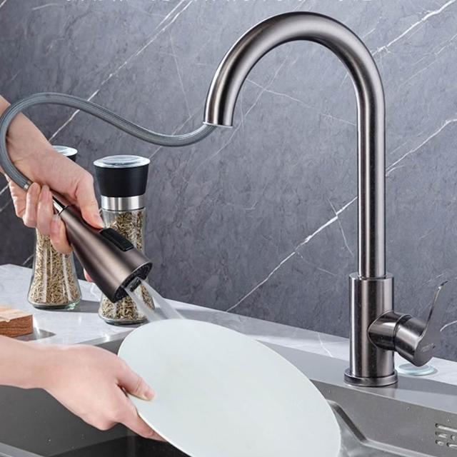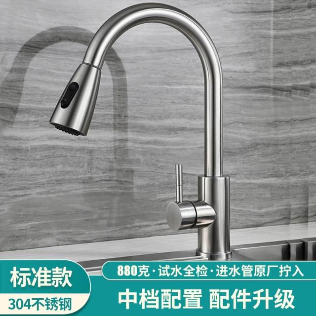現貨 水龍頭 可旋轉 可抽拉 伸縮式廚房水龍頭 標准款 304不鏽鋼水龍頭9/29