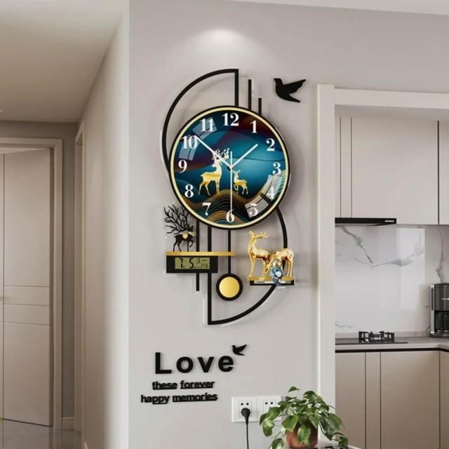 現貨 新款靜音時鐘 壁飾壁鐘 小鹿擺鐘 現代鐘錶 石英鐘 數字 3/17
