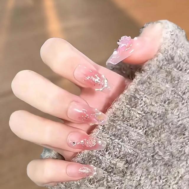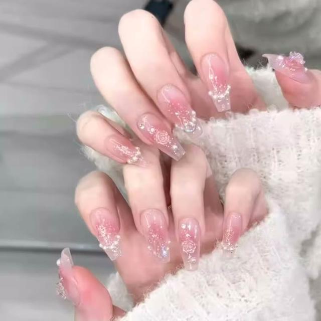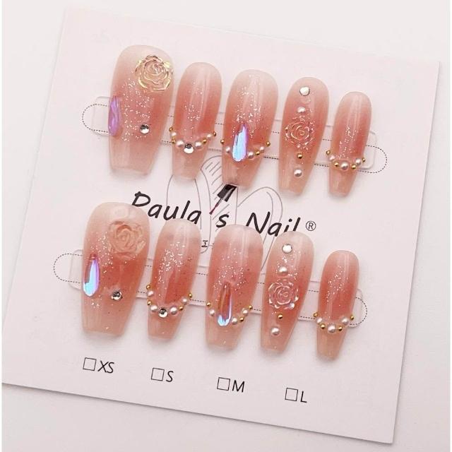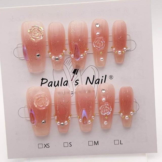 Paula’s Nail 寶拉美甲❤️買一送一盒品牌美甲 冰透山茶花 純手工美甲❤️ 手工穿戴甲 指甲貼片 HNP032