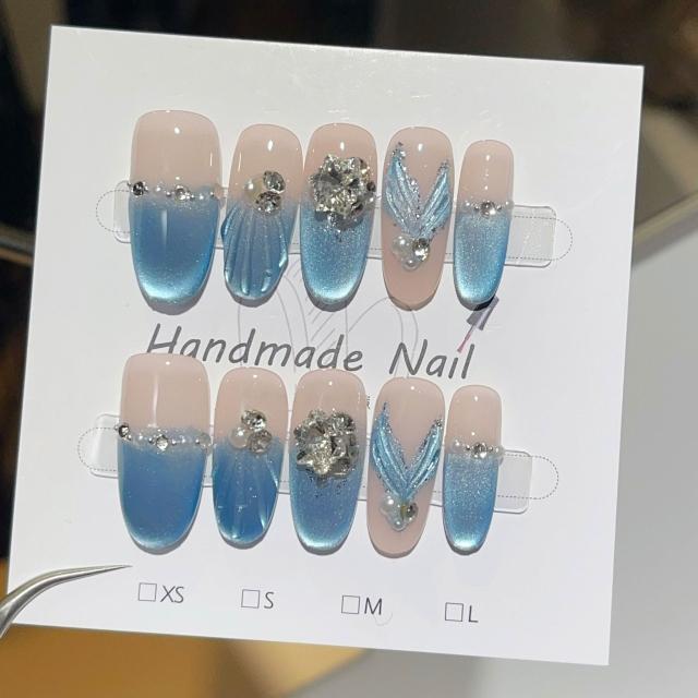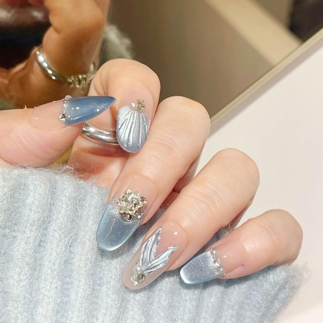 Paula’s Nail 寶拉美甲❤️買一送一盒品牌美甲 冰川魚尾 純手工美甲❤️ 手工穿戴甲 指甲貼片 HNP130