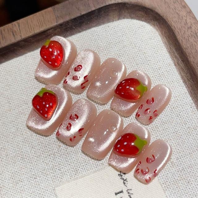 Paula’s Nail 寶拉美甲❤️買一送一盒品牌美甲 手捏捏草莓 純手工美甲❤️ 手工穿戴甲 指甲貼片 HNP169