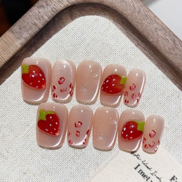 Paula’s Nail 寶拉美甲❤️買一送一盒品牌美甲 手捏捏草莓 純手工美甲❤️ 手工穿戴甲 指甲貼片 HNP169