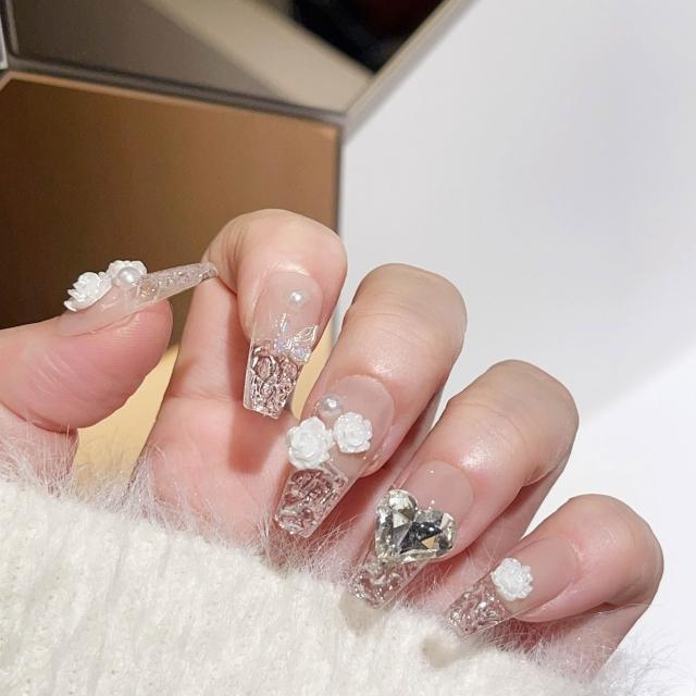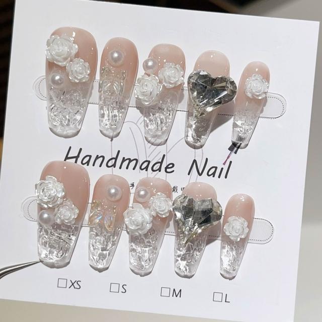 Paula’s Nail 寶拉美甲❤️買一送一盒品牌美甲 透明冰晶 純手工美甲❤️ 手工穿戴甲 指甲貼片 HNP183