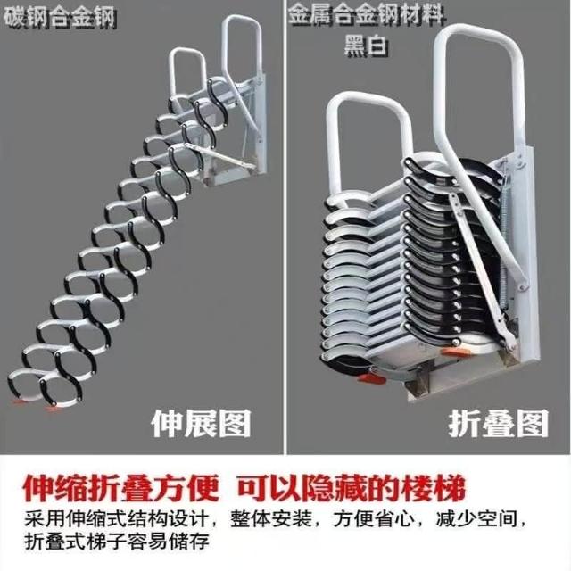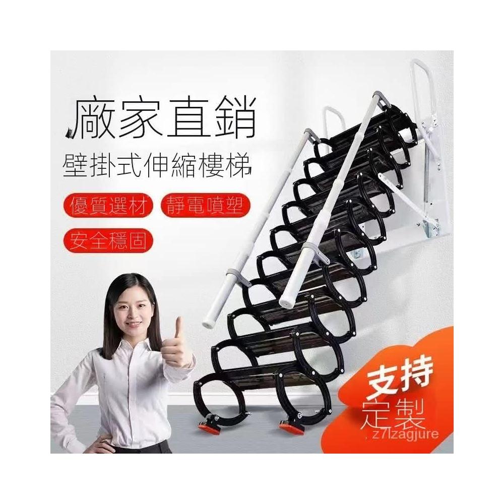 免運 梯子 伸縮梯 壁掛式室內外伸縮閣樓傢用定製陞降梯子隱形電動半自動折疊簡易 4WMW