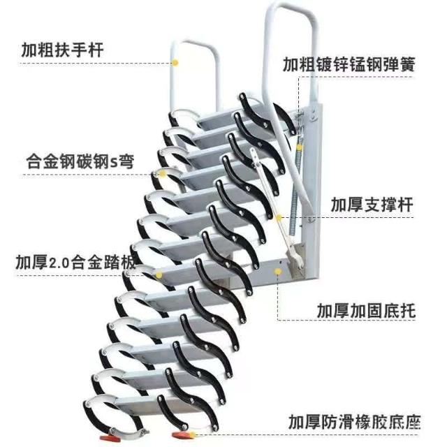 免運 梯子 伸縮梯 壁掛式室內外伸縮閣樓傢用定製陞降梯子隱形電動半自動折疊簡易 4WMW