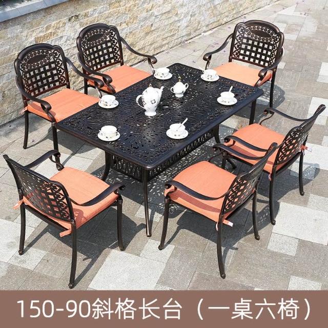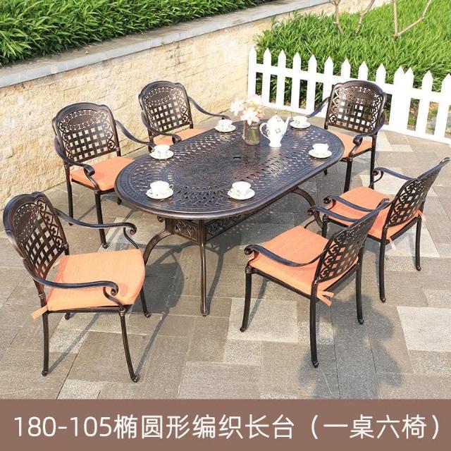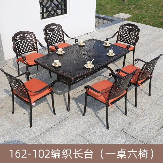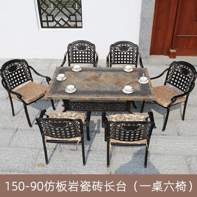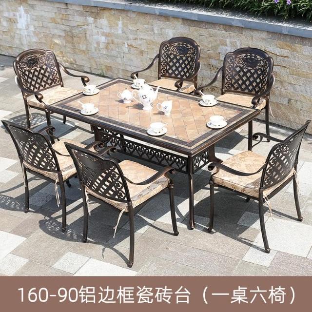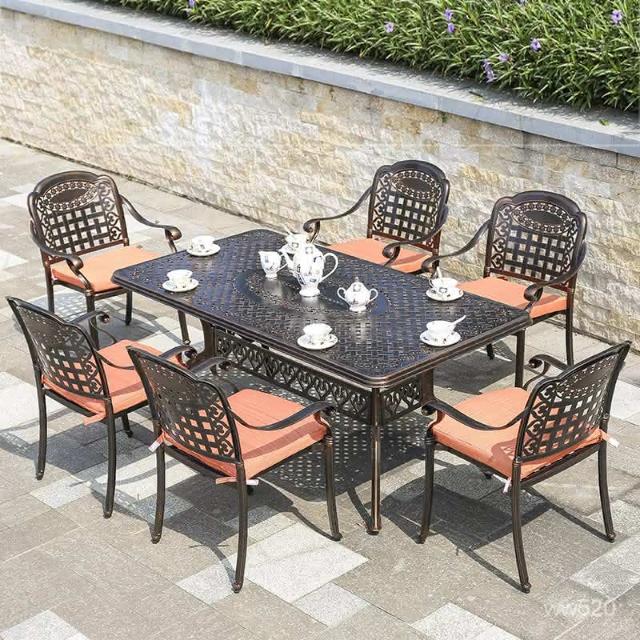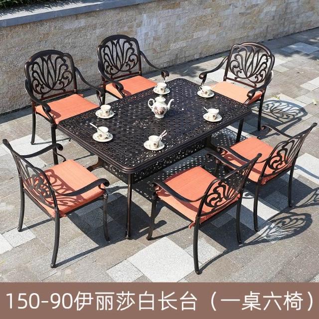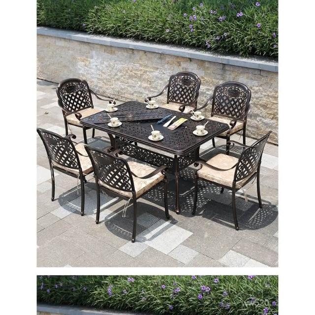品質保證 鑄鋁戶外桌椅三五件套組閤歐式別墅花園庭院傢具室外鐵藝長方桌椅