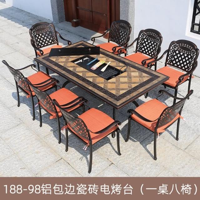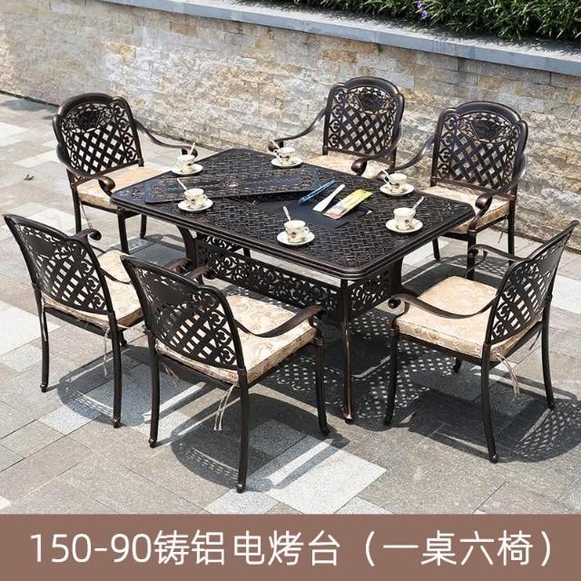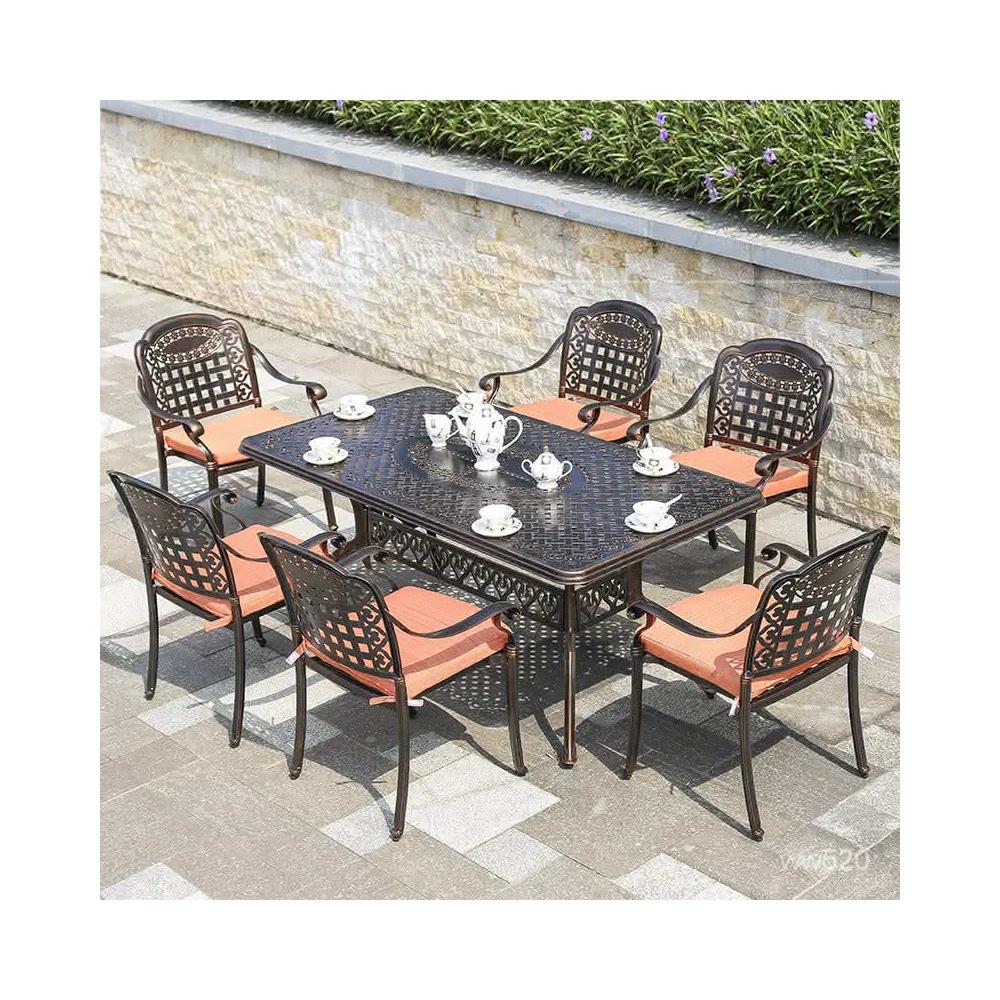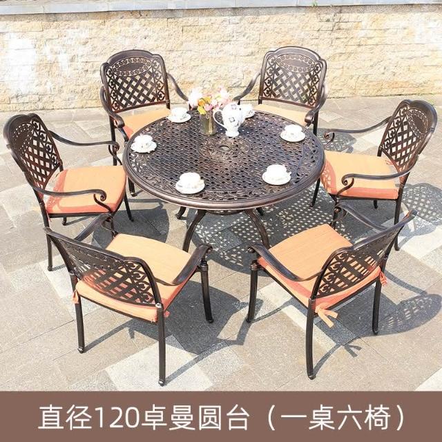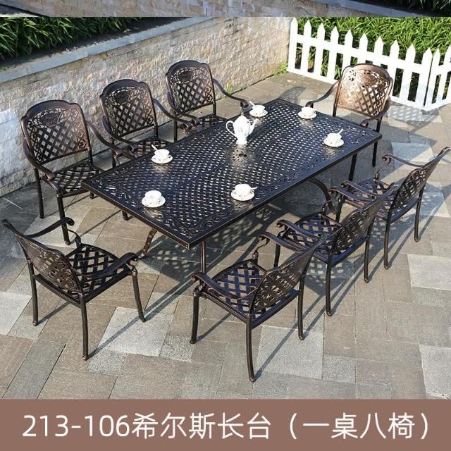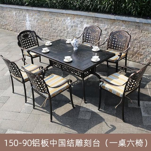 品質保證 鑄鋁戶外桌椅三五件套組閤歐式別墅花園庭院傢具室外鐵藝長方桌椅