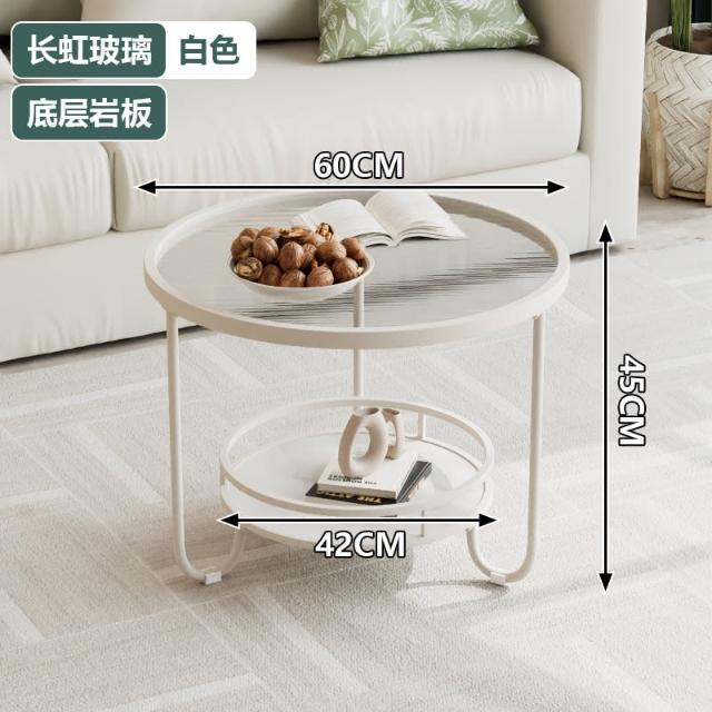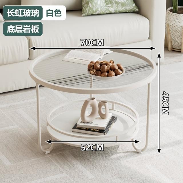 北歐長虹玻璃茶几家用忌廉風客廳小戶型白色極簡ins小茶几桌子