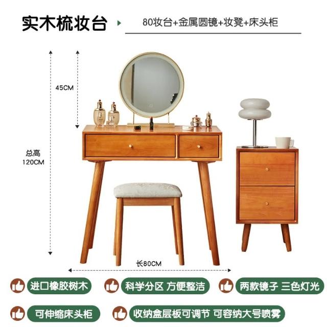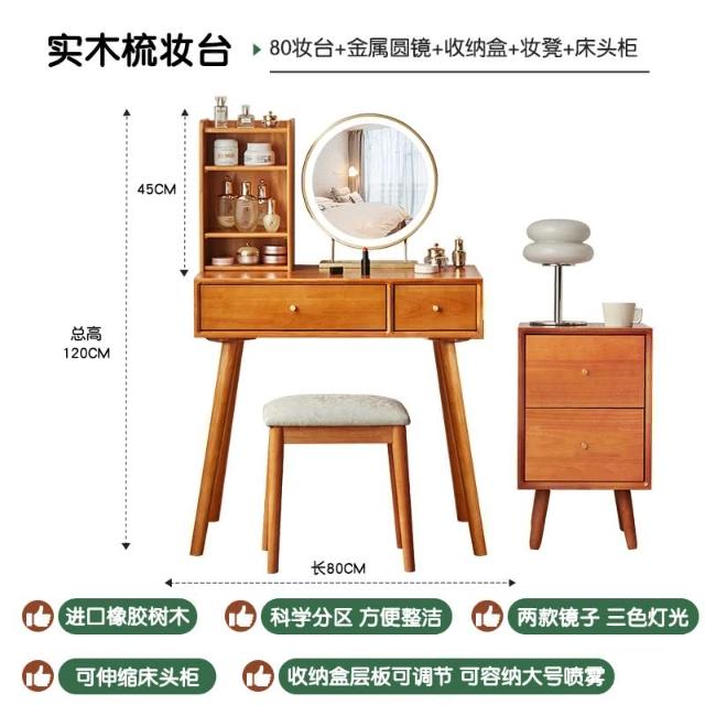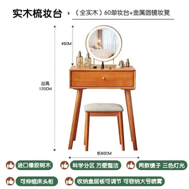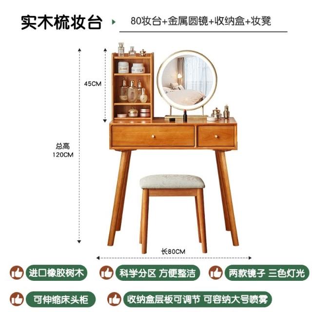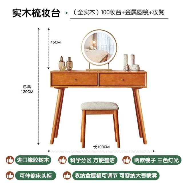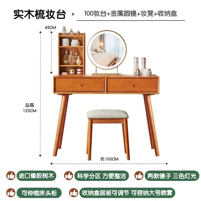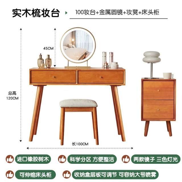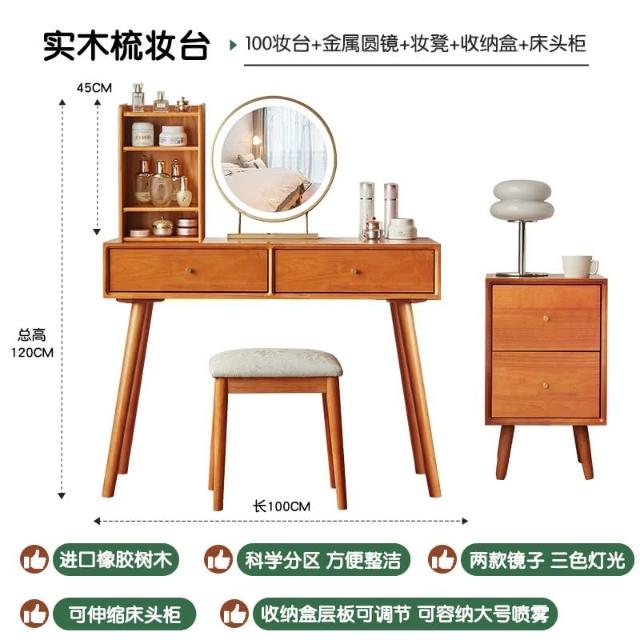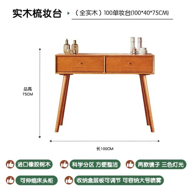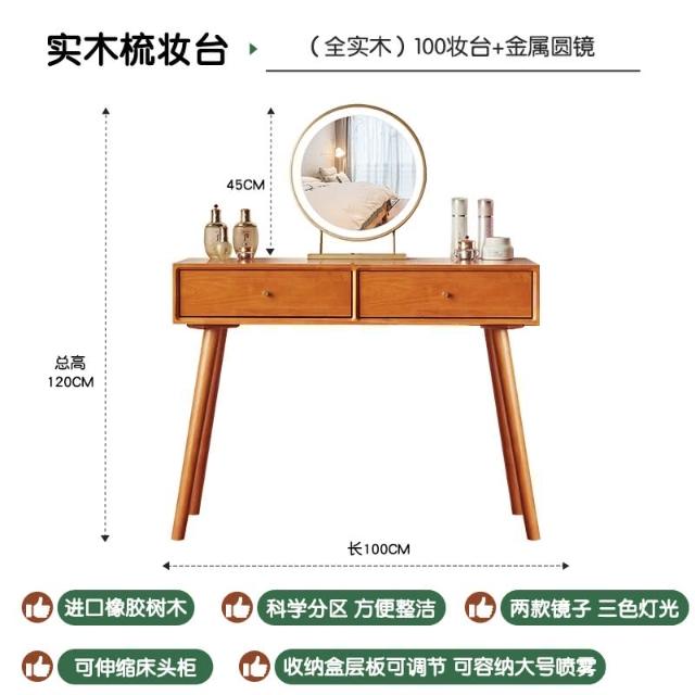 全實木梳妝台 實木化妝台 實木化妝桌 卧室桌 簡約化妝桌 小戶型帶鏡化妝台收納櫃一體
