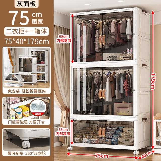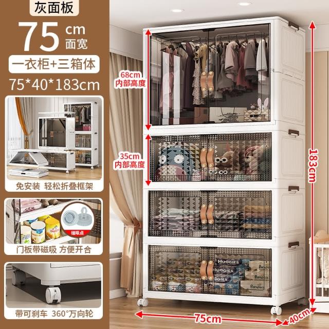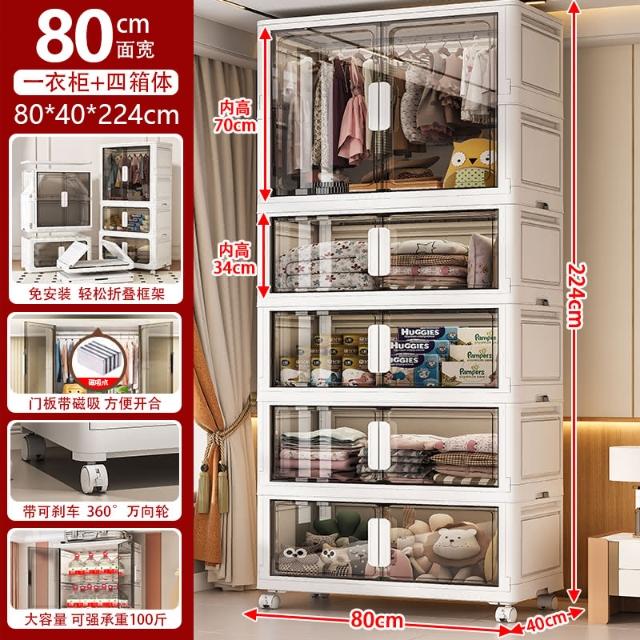 简易衣柜免安装家用衣服收纳柜儿童塑料衣橱卧室出租屋折叠储物柜