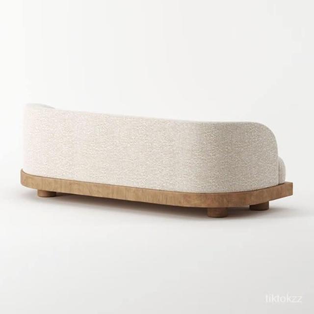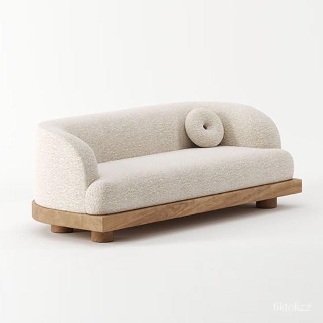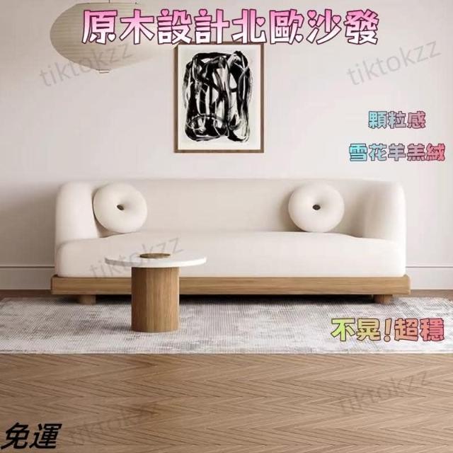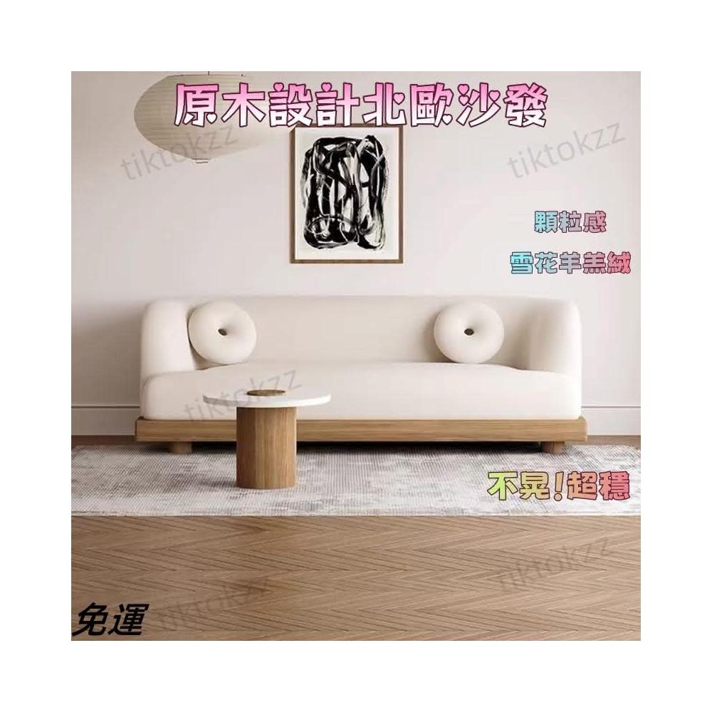 侘寂風木質沙發異形簡約日式小戶型三人ins羊羔絨布藝沙發米白色 懶人沙發 羊羔絨沙發 日式沙發 沙發床