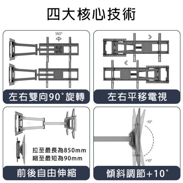 電視壁掛架 全品牌通用+加粗冷軋鋼+180°旋轉 壁掛式電視支架 電視架 電視掛架 壁掛電視架 伸縮電視架 電視機架