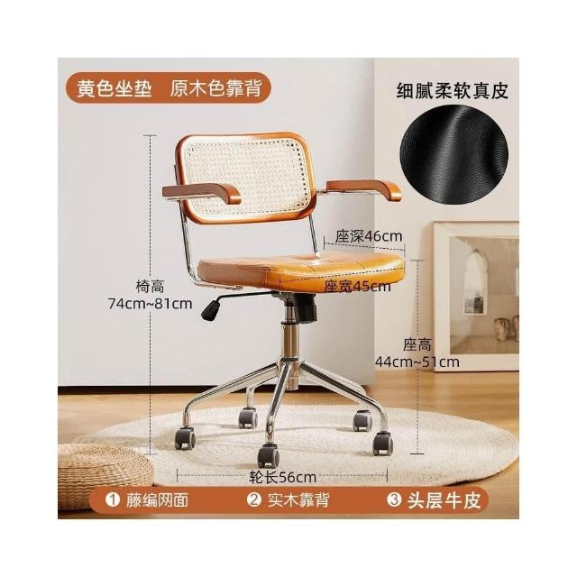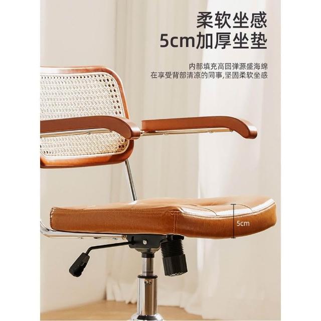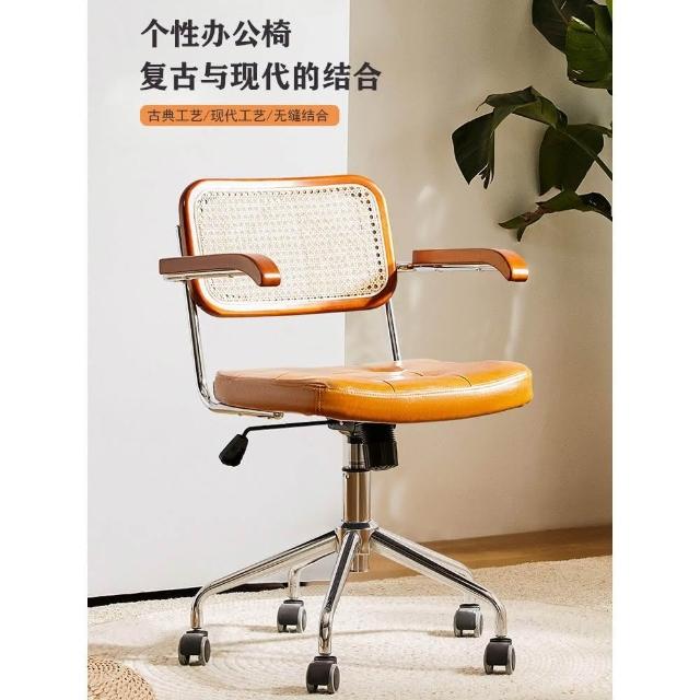 辦公椅 電腦椅 书房电脑椅复古办公椅藤编实木家用书桌转椅座椅升降椅子人体工学