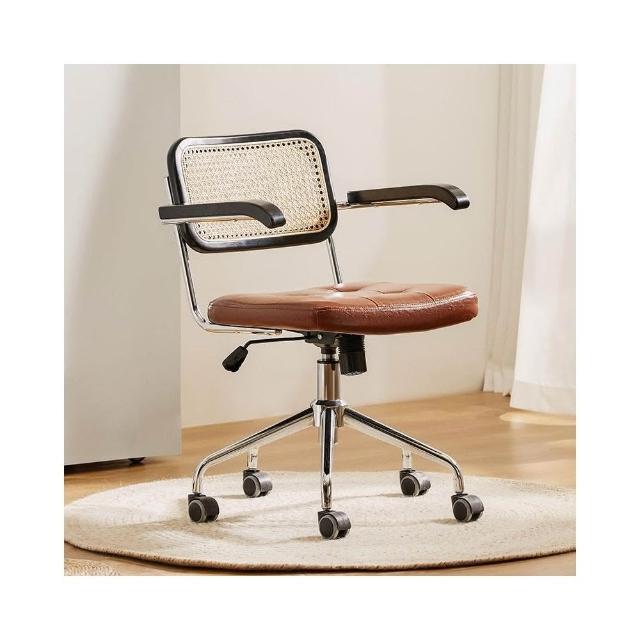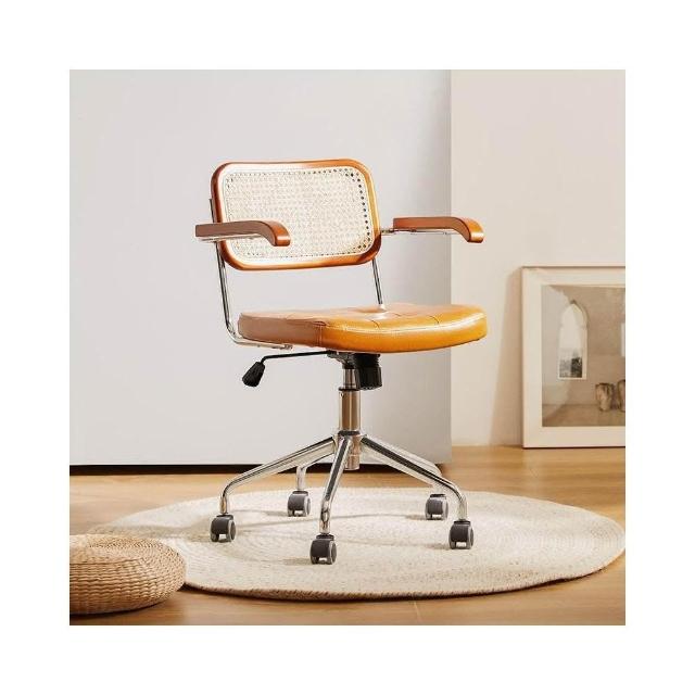 辦公椅 電腦椅 书房电脑椅复古办公椅藤编实木家用书桌转椅座椅升降椅子人体工学