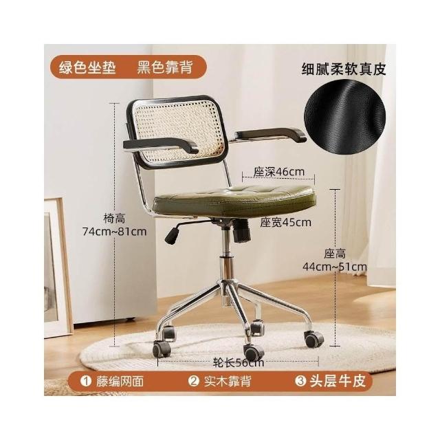 辦公椅 電腦椅 书房电脑椅复古办公椅藤编实木家用书桌转椅座椅升降椅子人体工学