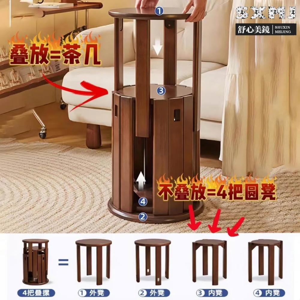 實木疊疊凳 客廳可疊放 家用多功能組合 板凳新中式 餐廳 圓凳 備用可收納凳子 餐椅 客人備用凳
