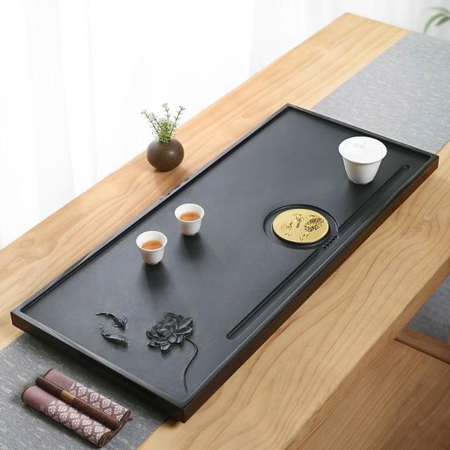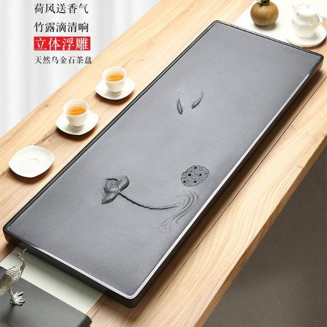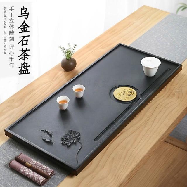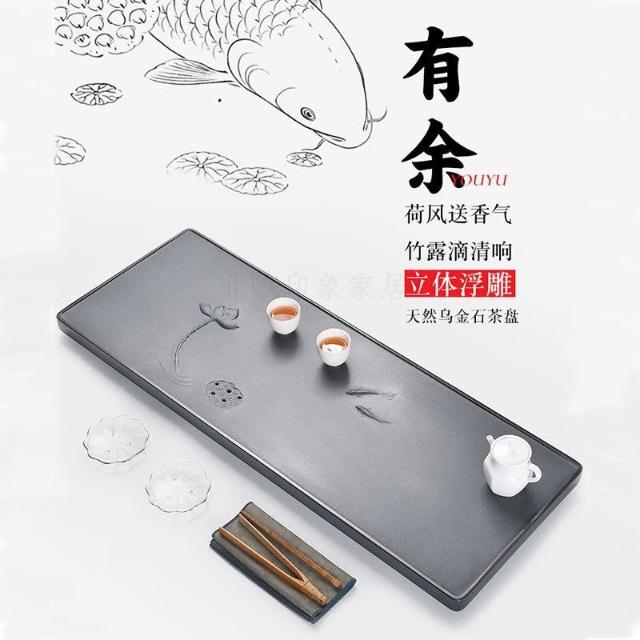 免運 可開發票 天然整塊烏金石頭茶盤傢用幹泡簡約茶臺泡茶石闆浮鵰茶海託盤茶具