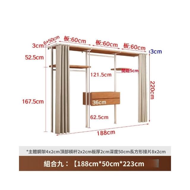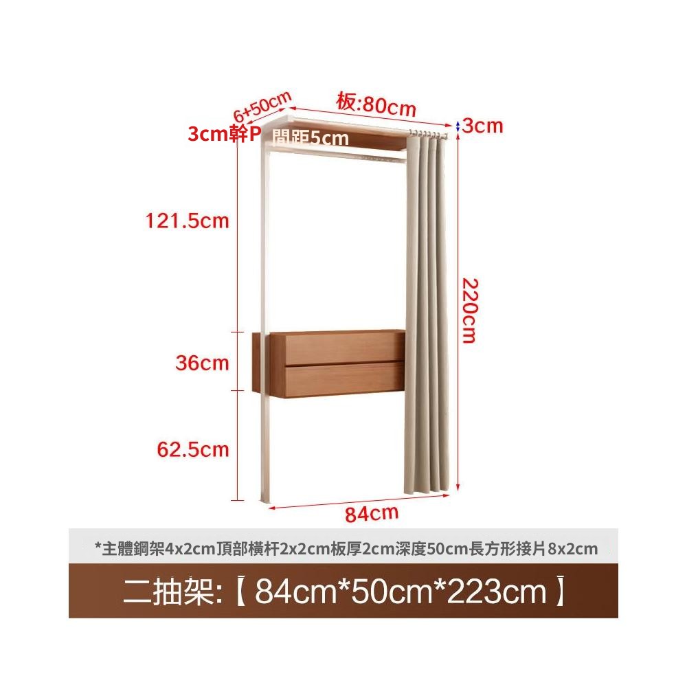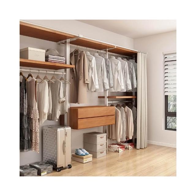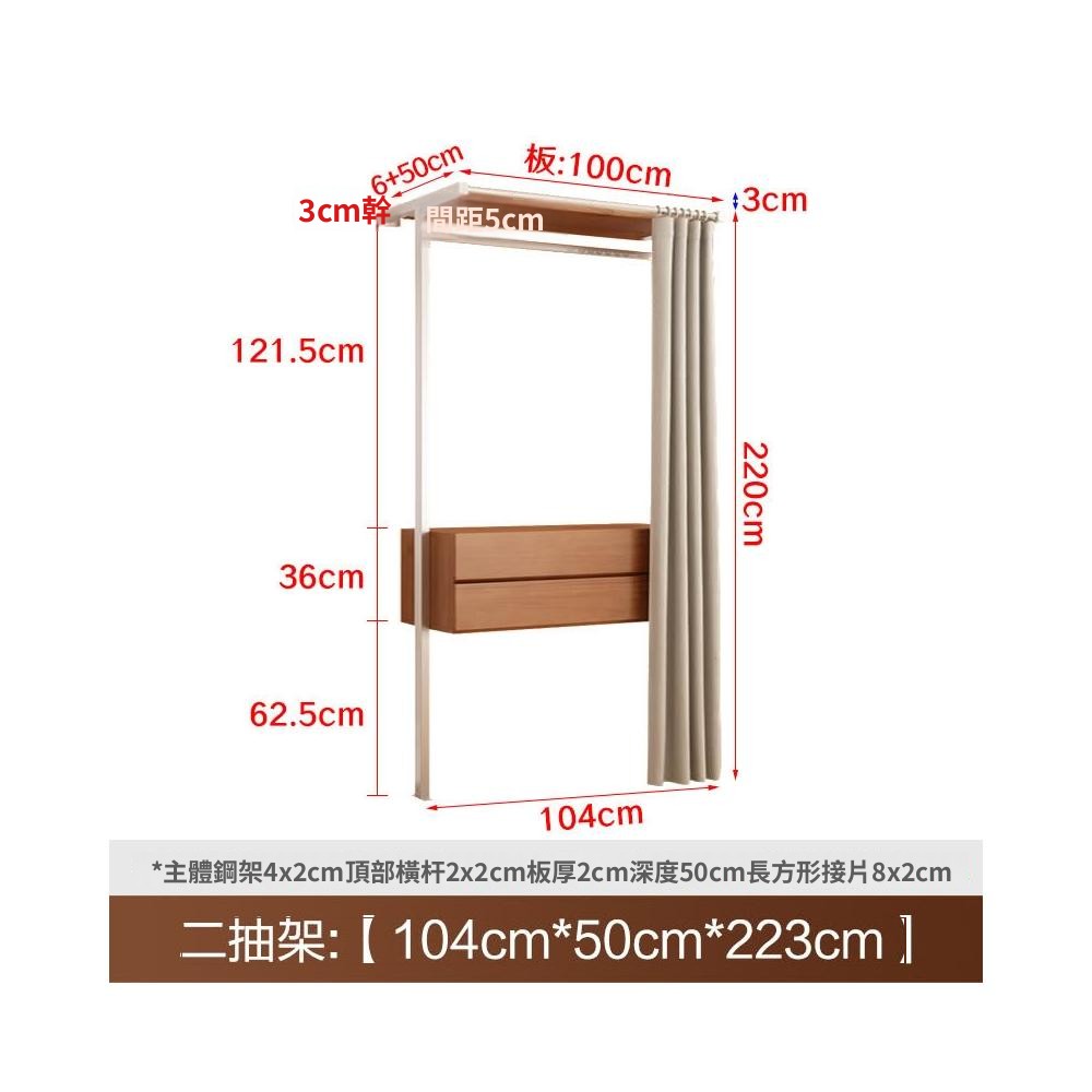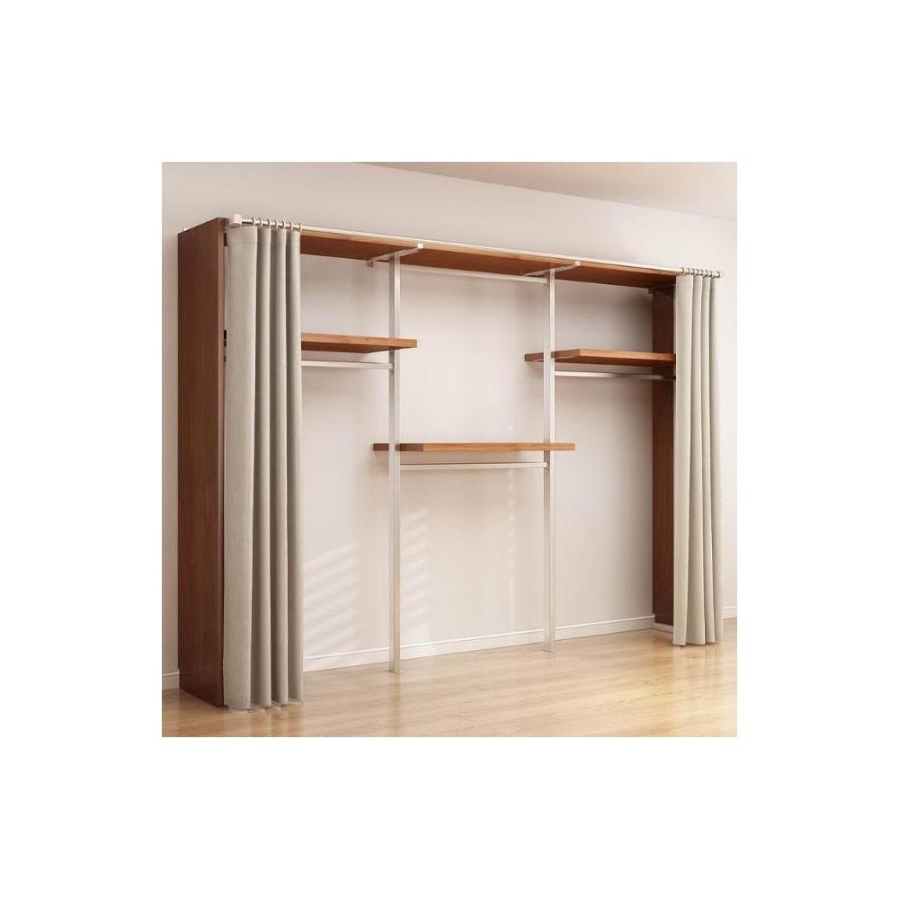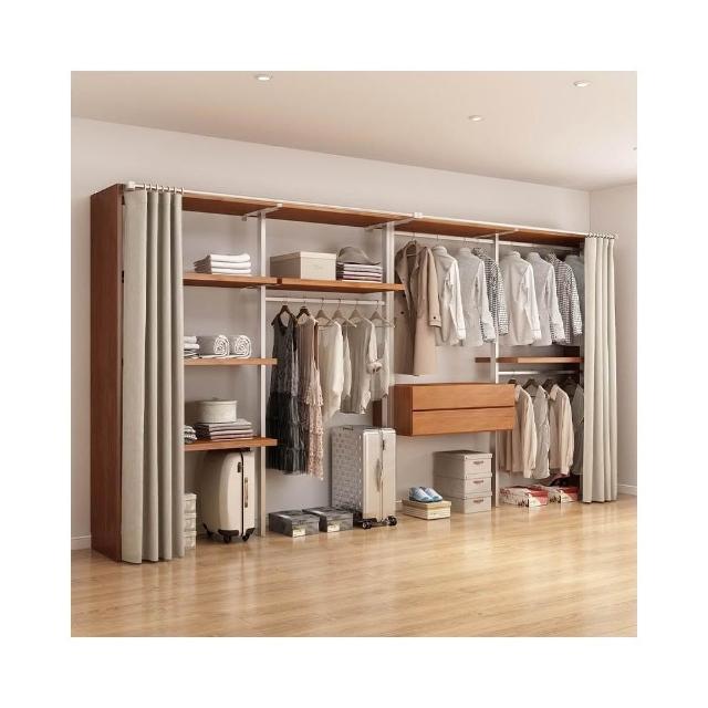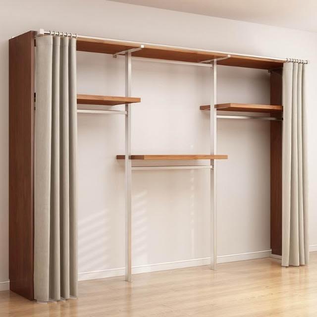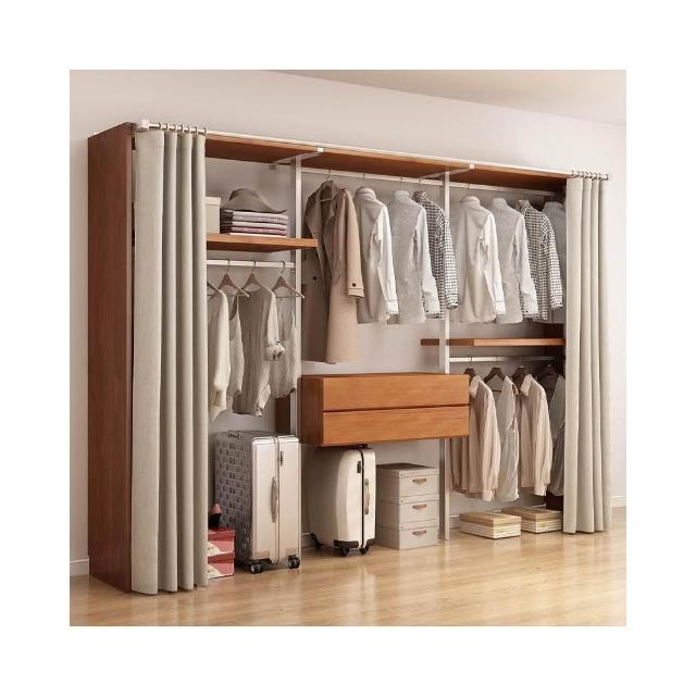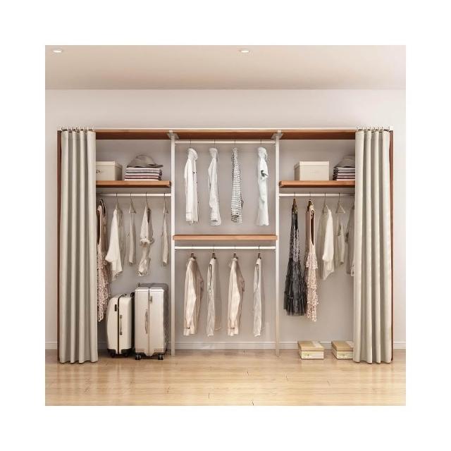 衣櫃 衣櫥 中古風金屬衣櫃開放式臥室落地鐵藝掛衣架砌牆步入式衣帽間帶簾子