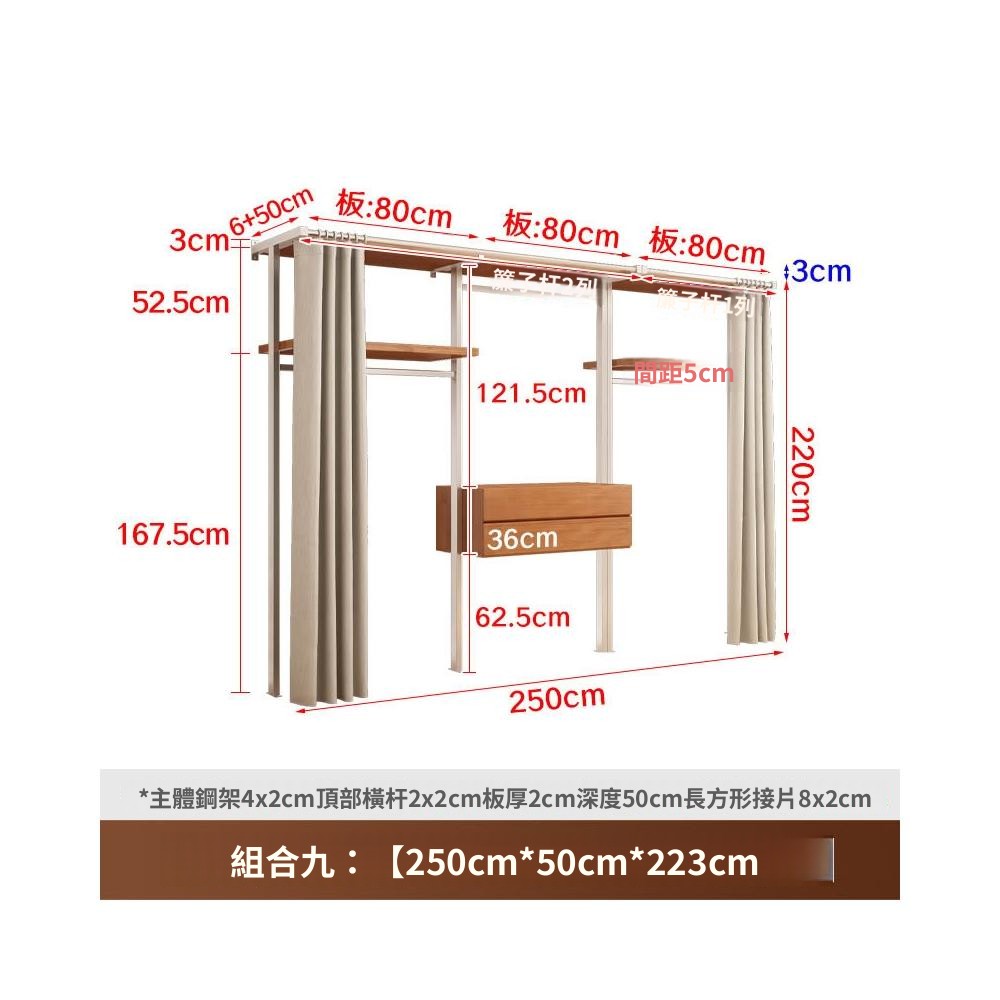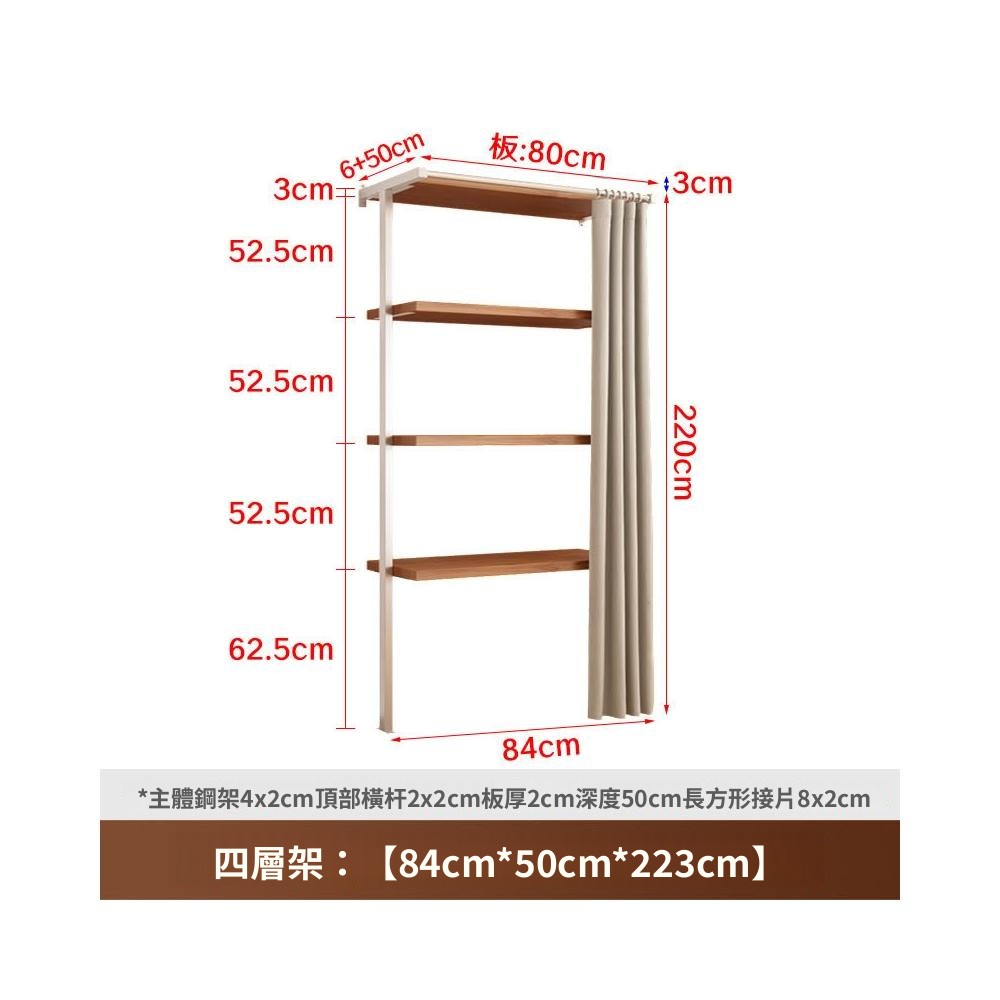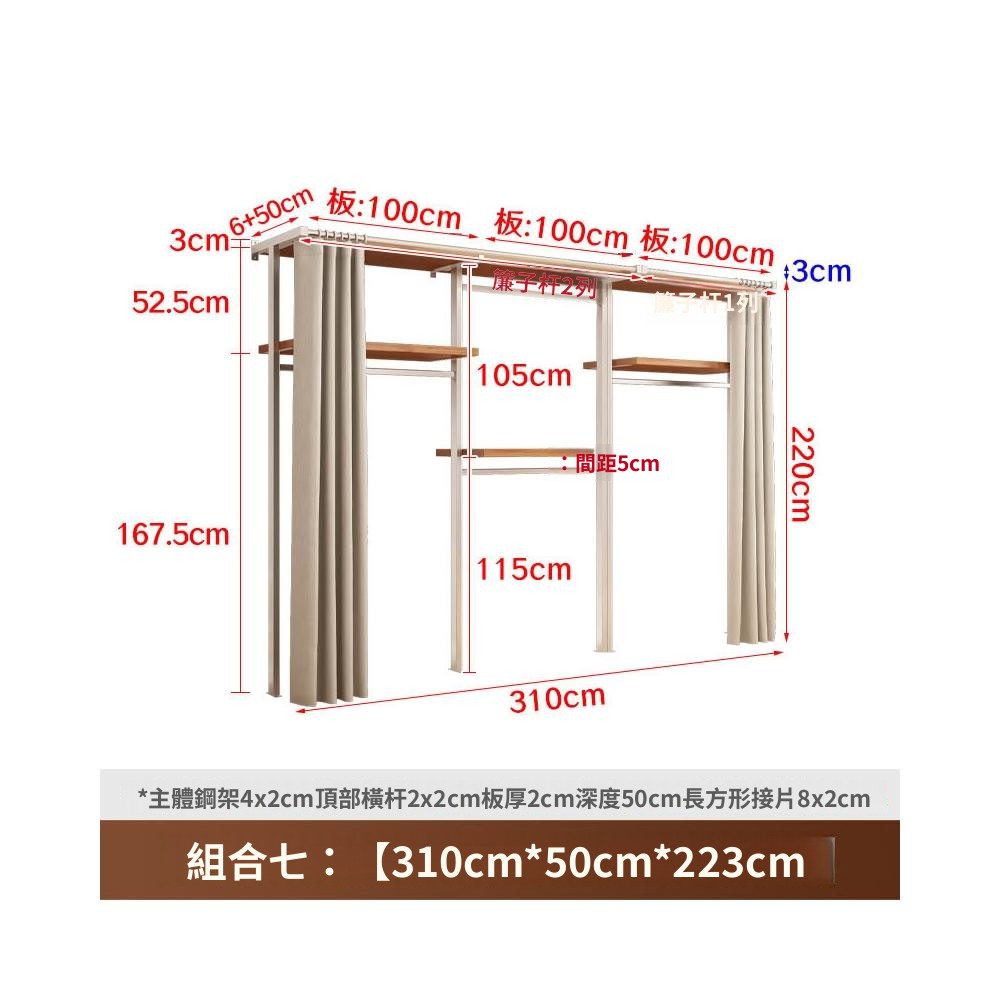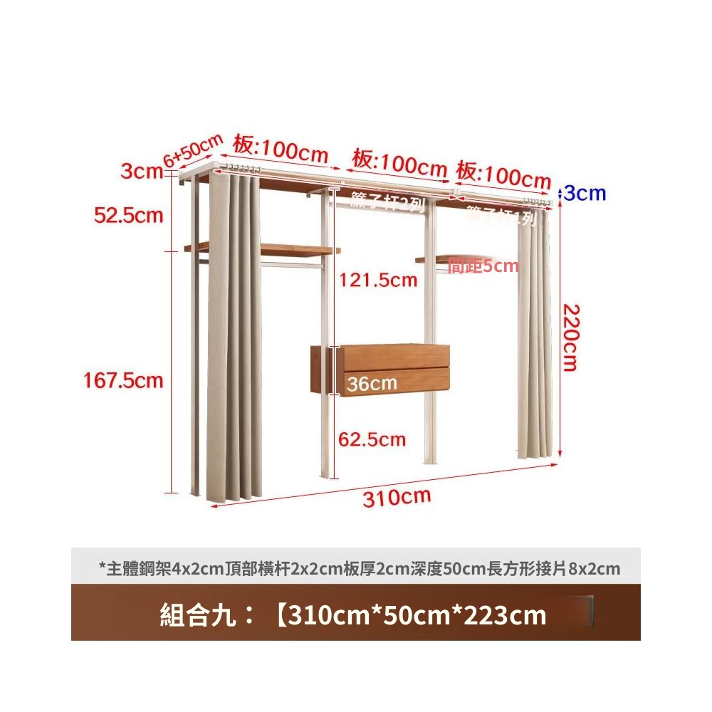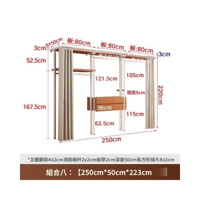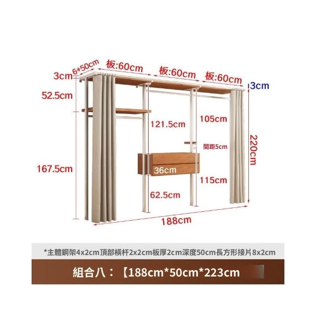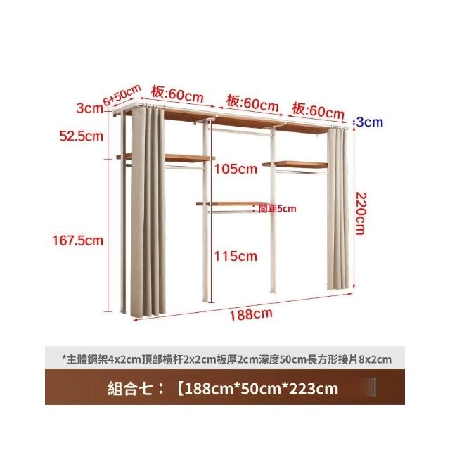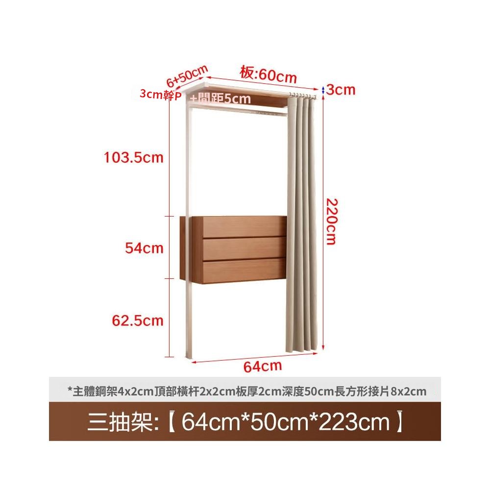 衣櫃 衣櫥 中古風金屬衣櫃開放式臥室落地鐵藝掛衣架砌牆步入式衣帽間帶簾子