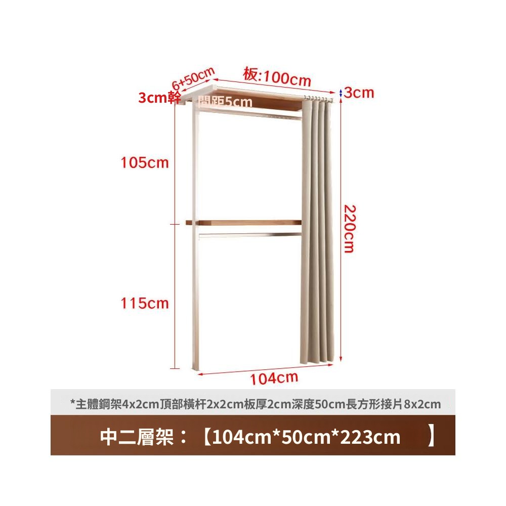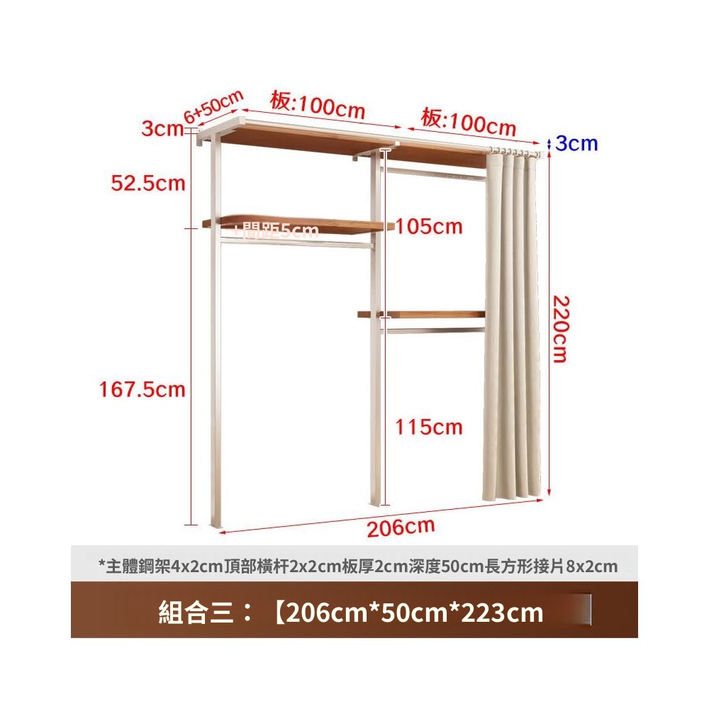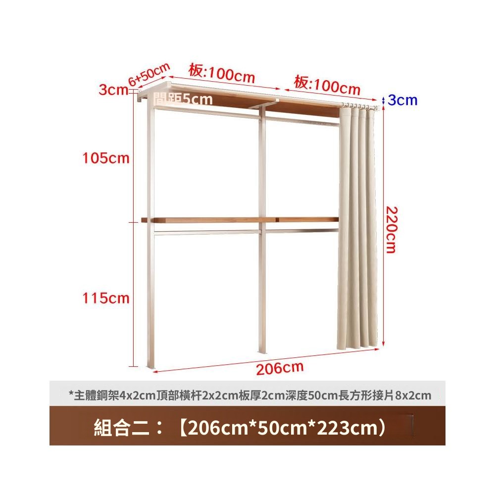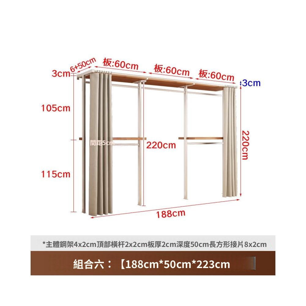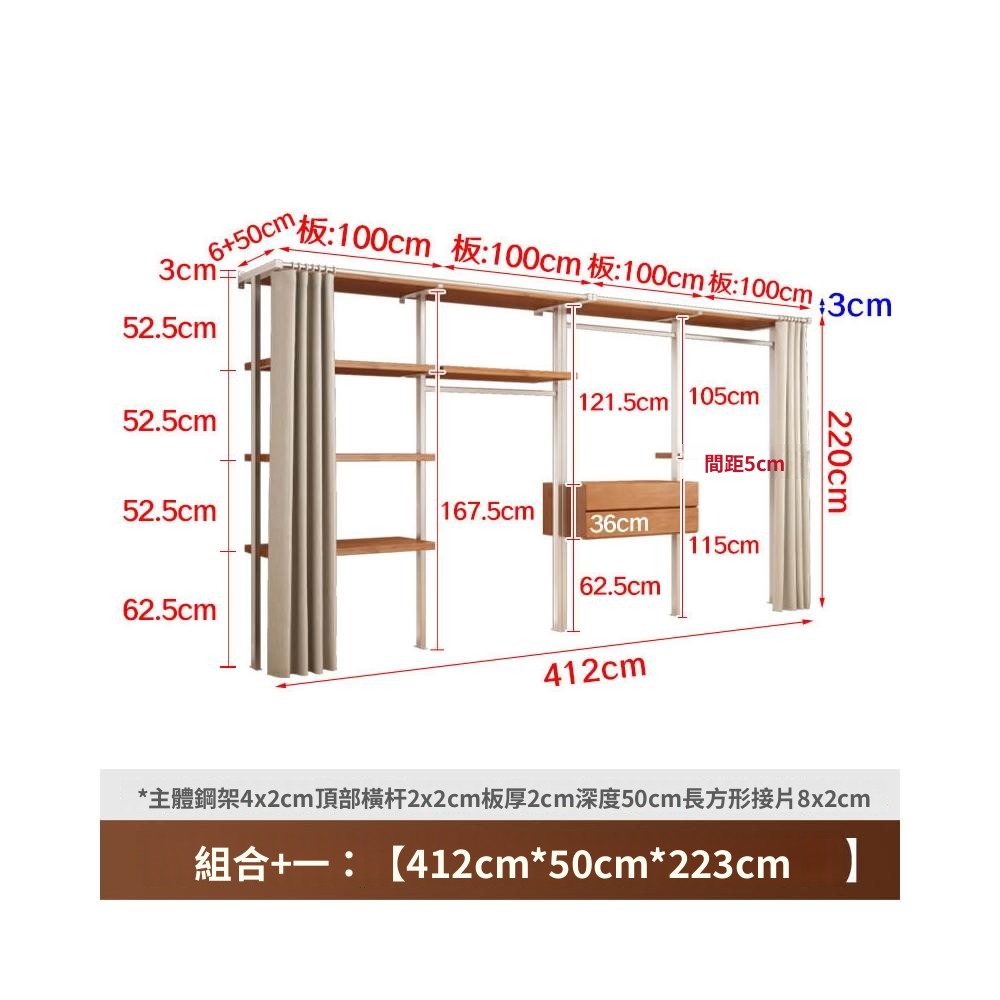 衣櫃 衣櫥 中古風金屬衣櫃開放式臥室落地鐵藝掛衣架砌牆步入式衣帽間帶簾子