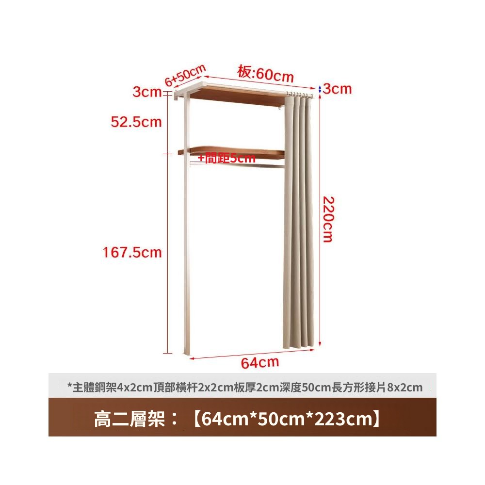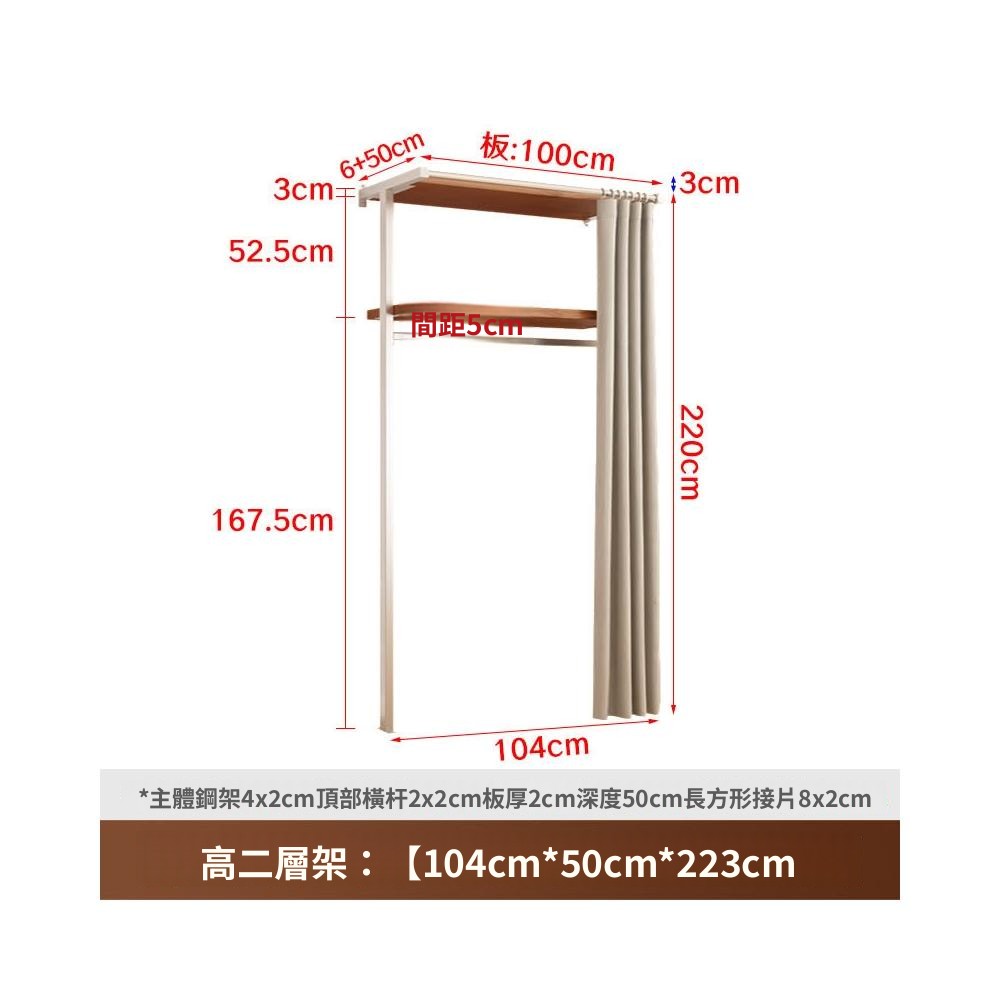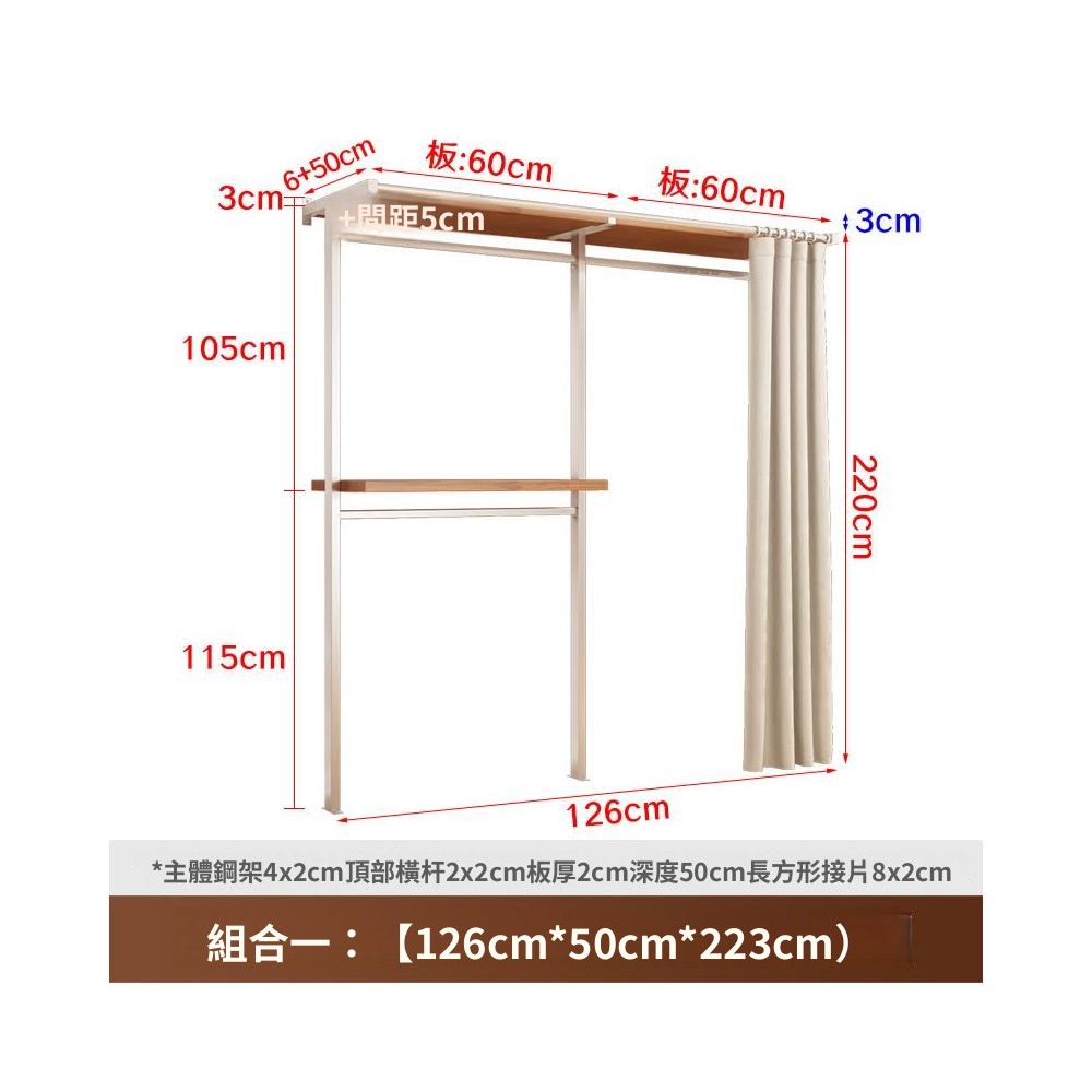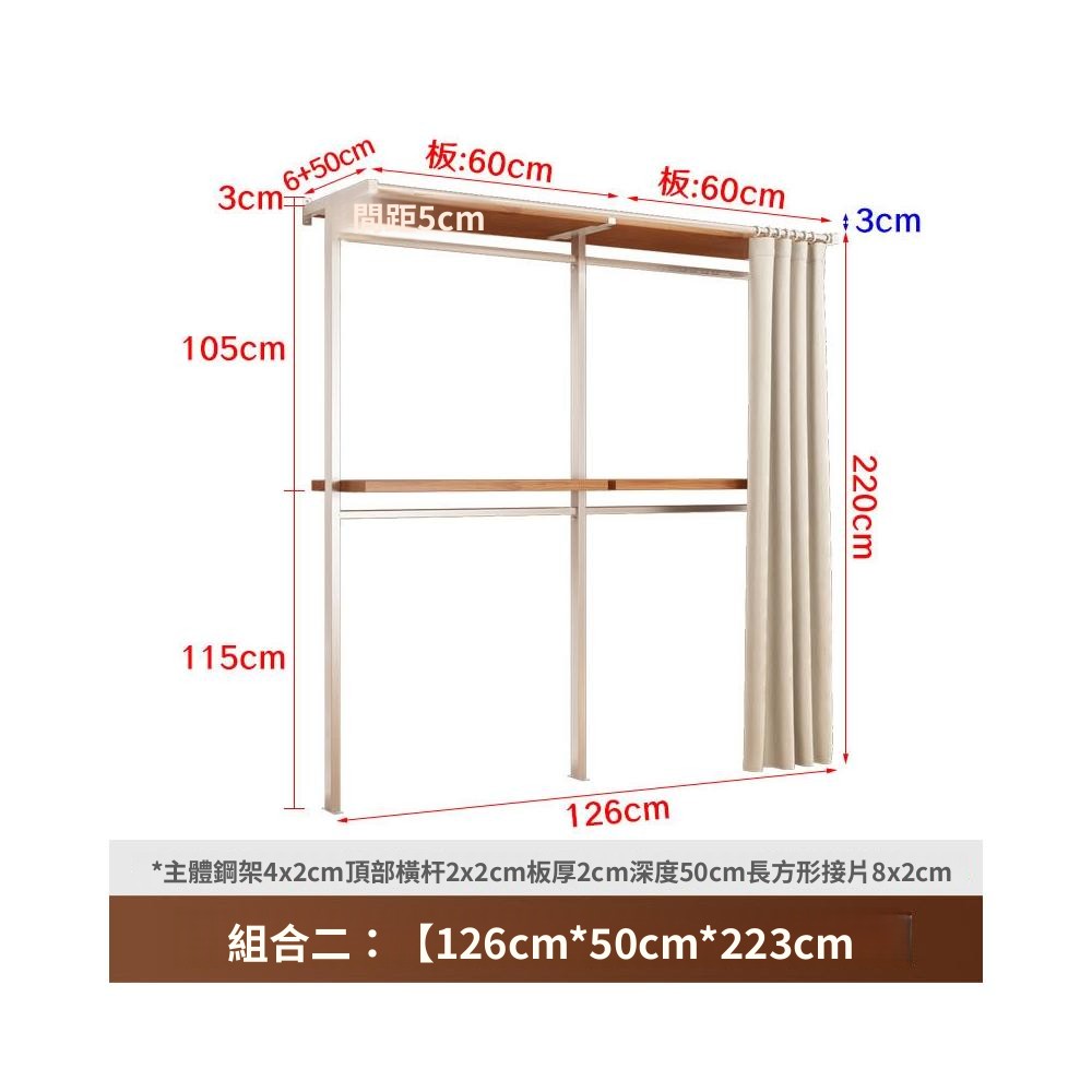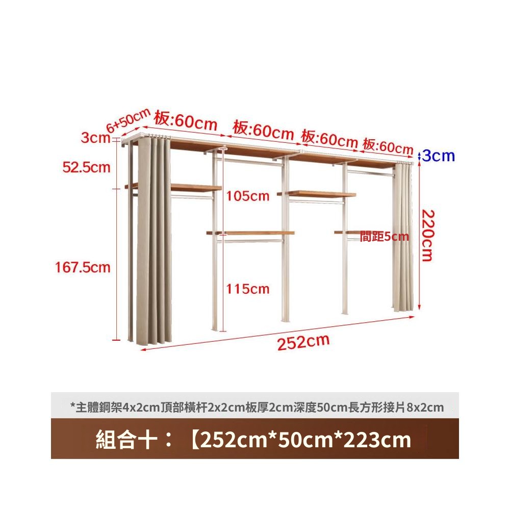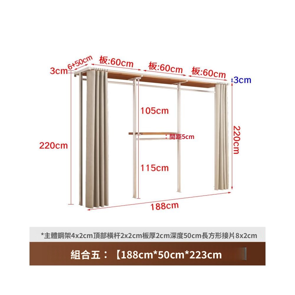 衣櫃 衣櫥 中古風金屬衣櫃開放式臥室落地鐵藝掛衣架砌牆步入式衣帽間帶簾子