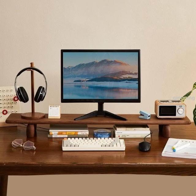 黑胡桃木支架置物架增高架电脑桌面显示器显示屏底座垫高实木台式-