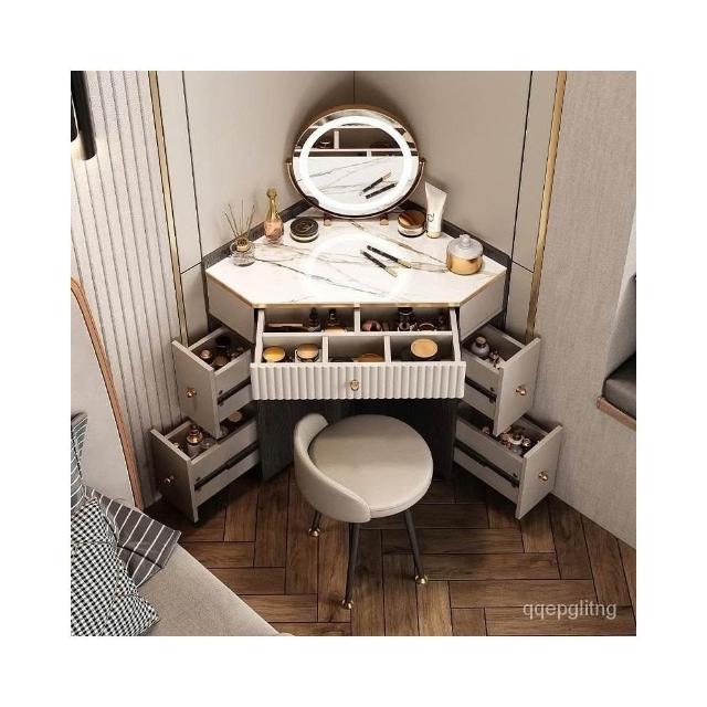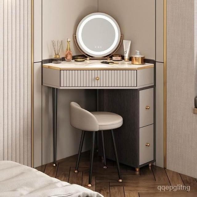 轉角化妝桌 輕奢三角梳妝臺收納櫃一體小戶型臥室現代簡約新款高級轉角化妝桌L型化妝桌 梳妝桌 梳妝臺 化妝臺 化妝櫃