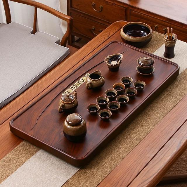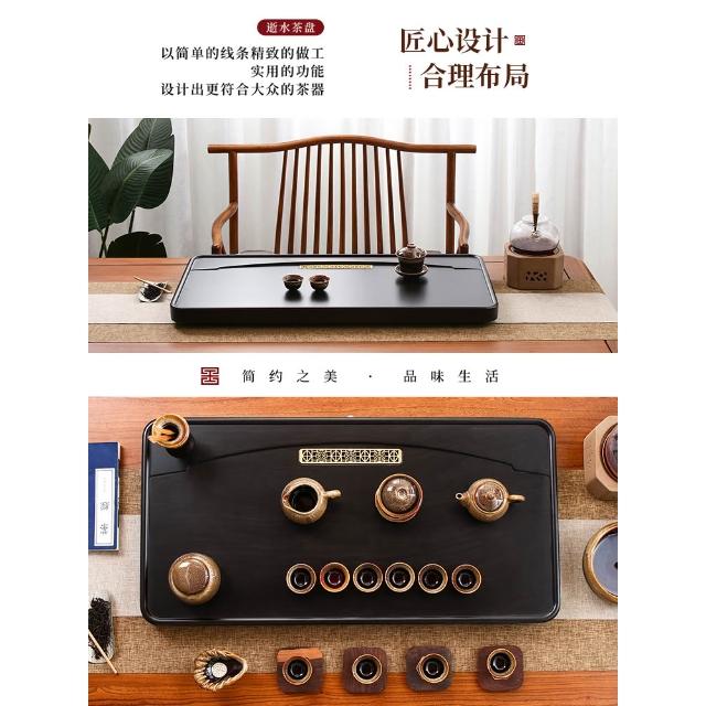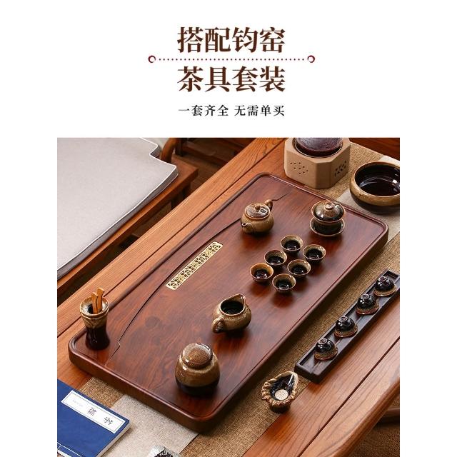 茶盤實木簡約整塊排水新款功夫茶具套裝輕奢現代家用長方形泡茶臺