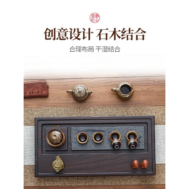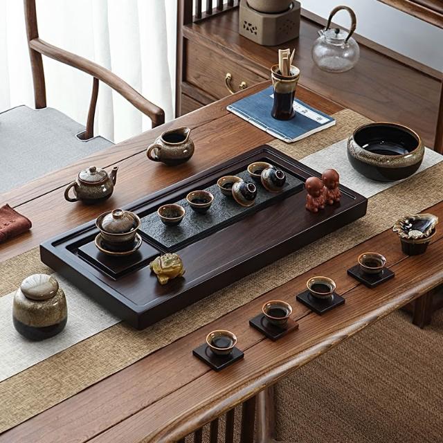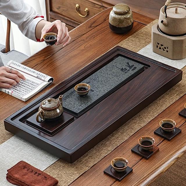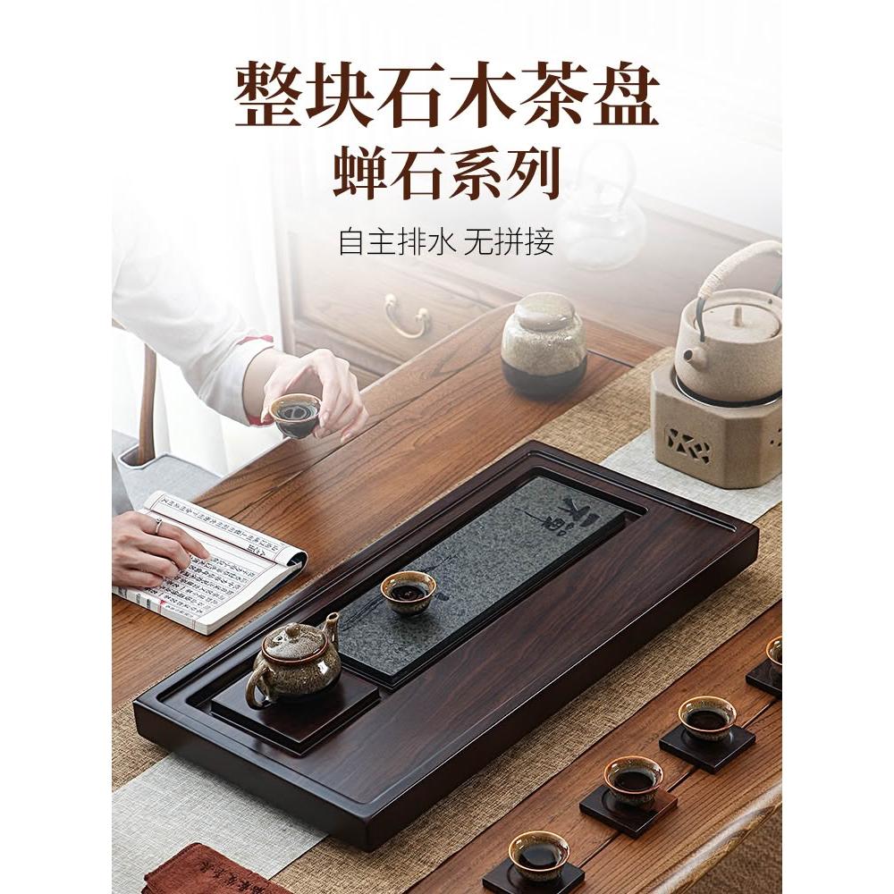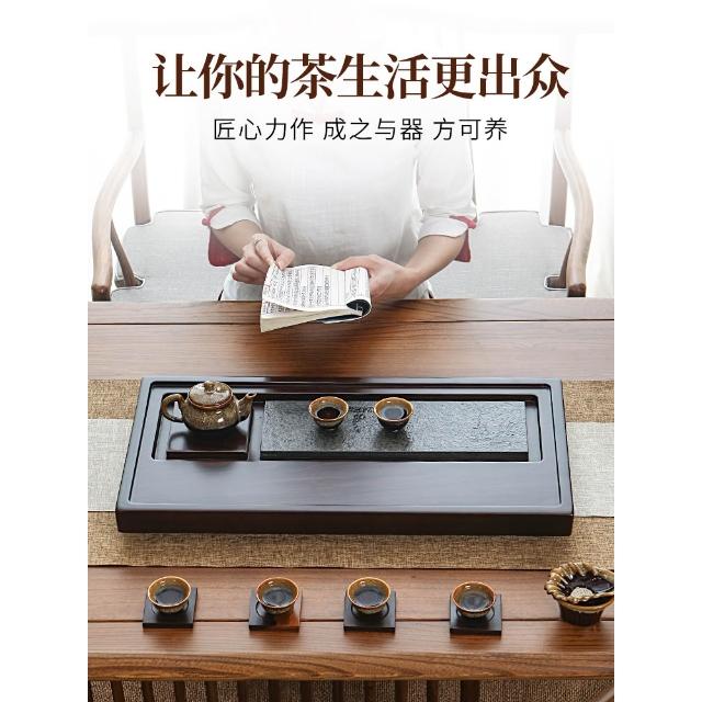 黑檀實木茶盤整塊家用中式茶海盤托烏金石大號原木泡茶高檔小茶臺