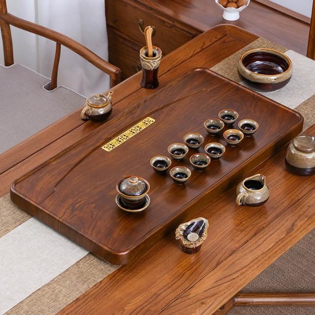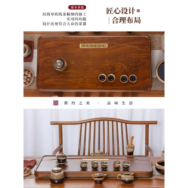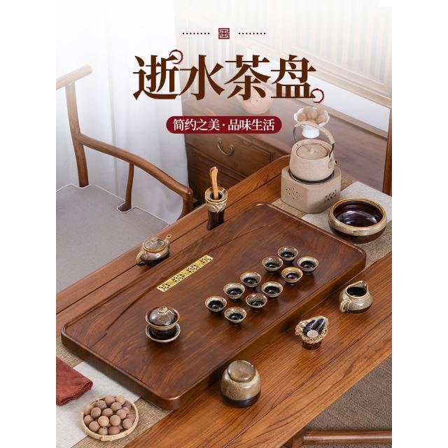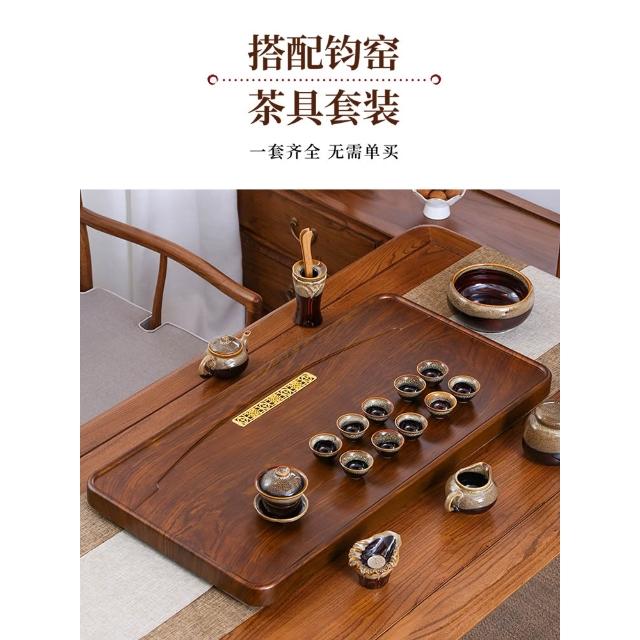 實木茶盤家用簡約整塊排水中式功夫茶具套裝輕奢現代長方形小茶臺