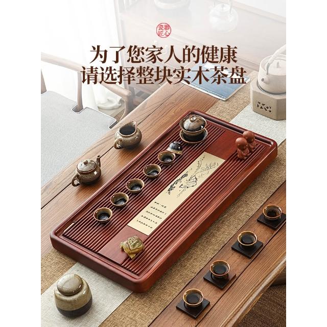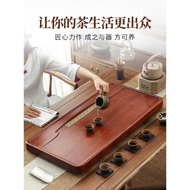 實木茶盤花梨木整塊新中式功夫茶具簡約家用排水輕奢現代紅木茶臺
