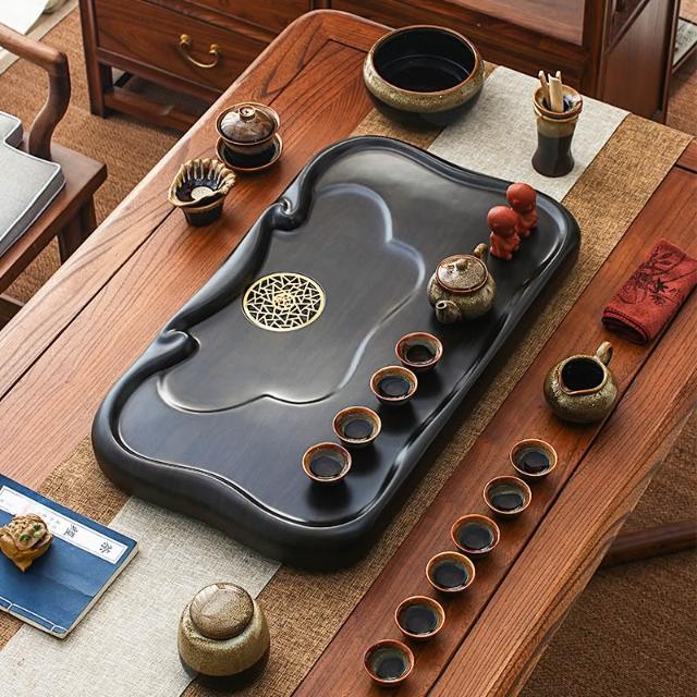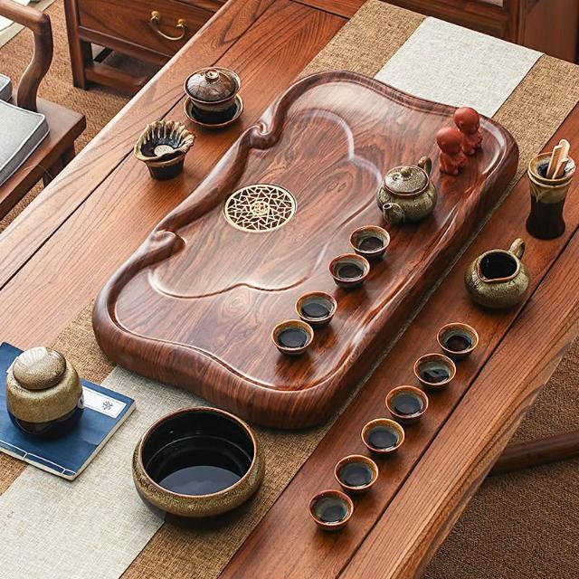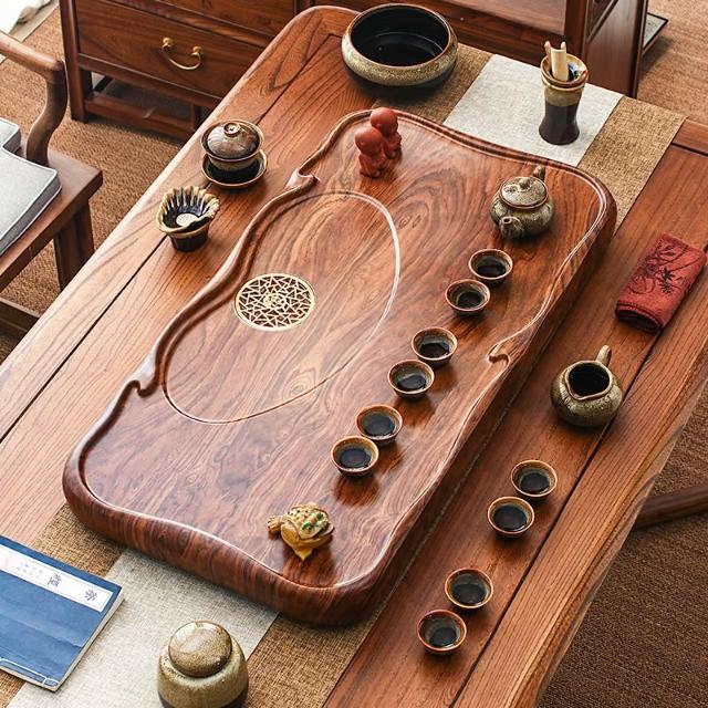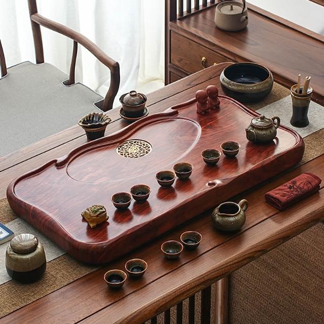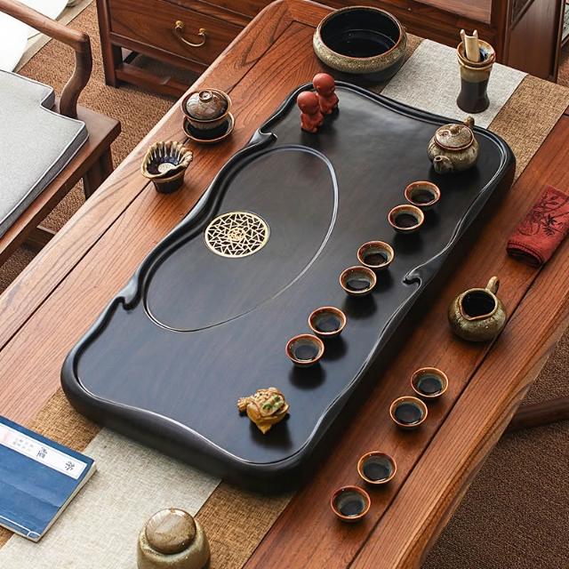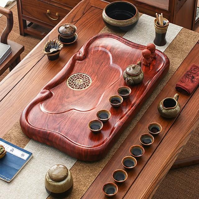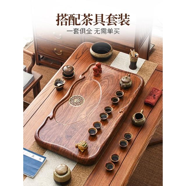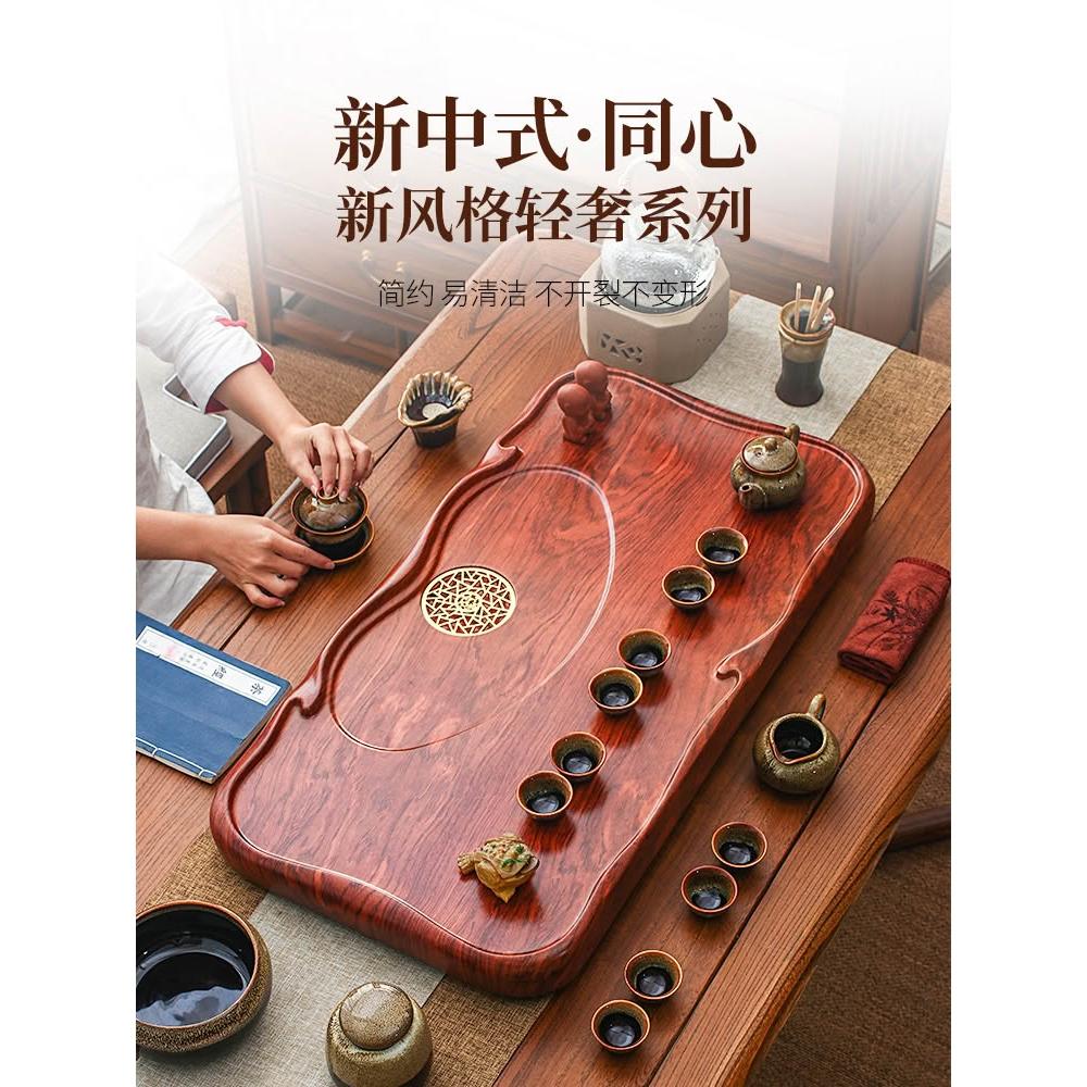 茶盤家用套裝排水式簡約功夫茶具託盤長方形輕奢現代仿實木小茶臺