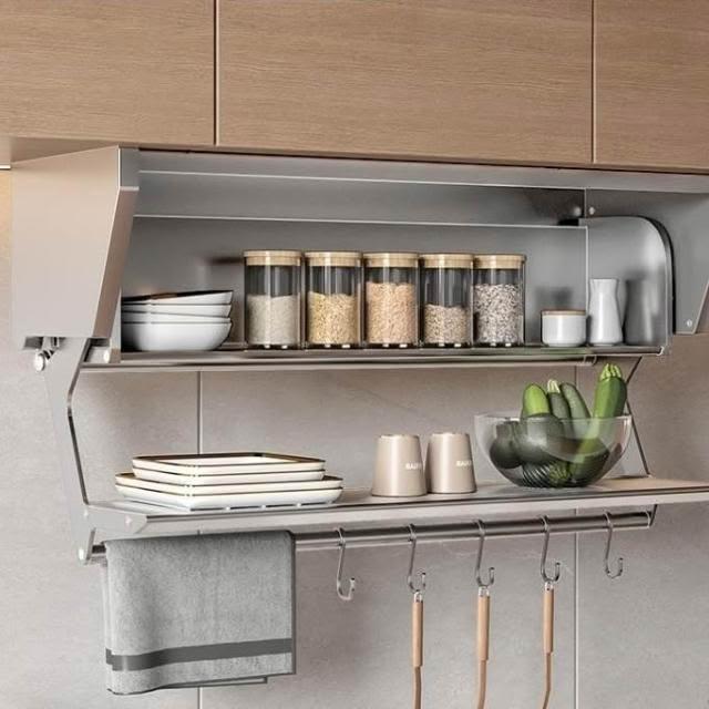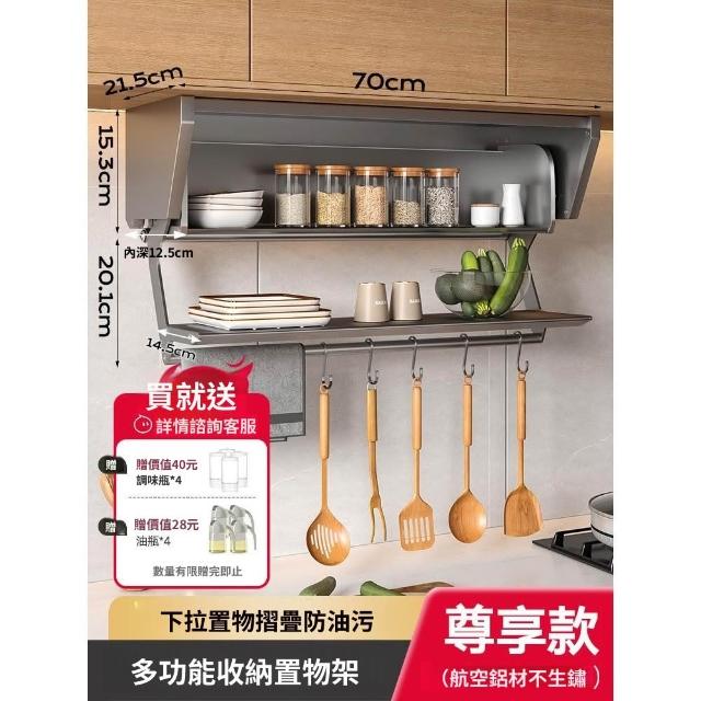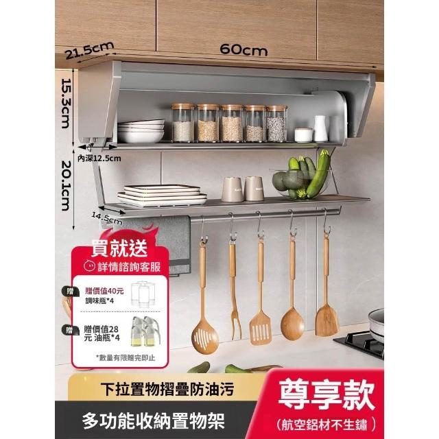 📜可開發票📜 廚房吊櫃 太空鋁下拉式升降拉籃 櫥櫃調味品頂櫃碗碟儲物架 摺疊收納置物架 廚具調味品收納拉籃
