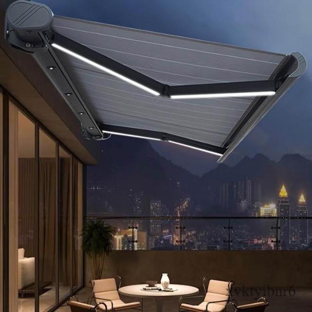✨廠家直銷✨ 戶外全盒遮陽棚 電動折疊伸縮式雨蓬 陽露台帶燈篷 庭院家用別墅雨棚