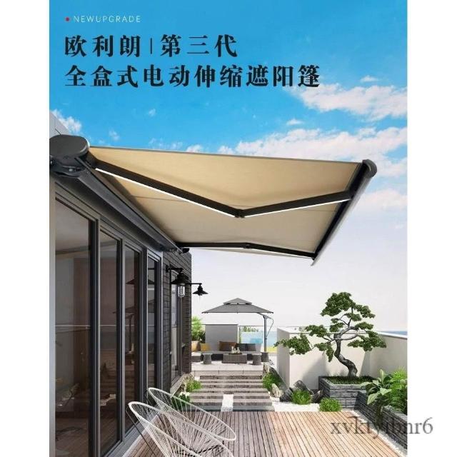 ✨廠家直銷✨ 戶外全盒遮陽棚 電動折疊伸縮式雨蓬 陽露台帶燈篷 庭院家用別墅雨棚