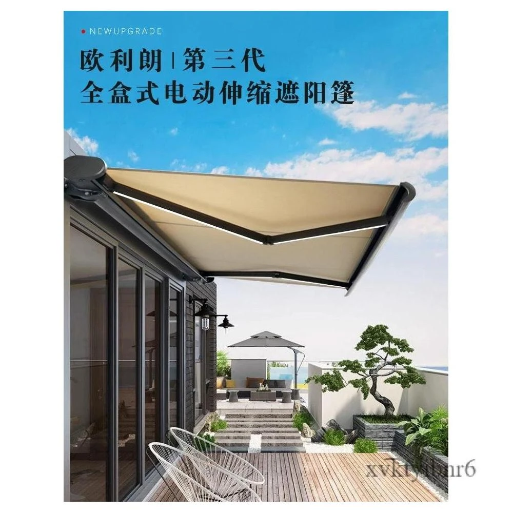 ✨廠家直銷✨ 戶外全盒遮陽棚 電動折疊伸縮式雨蓬 陽露台帶燈篷 庭院家用別墅雨棚