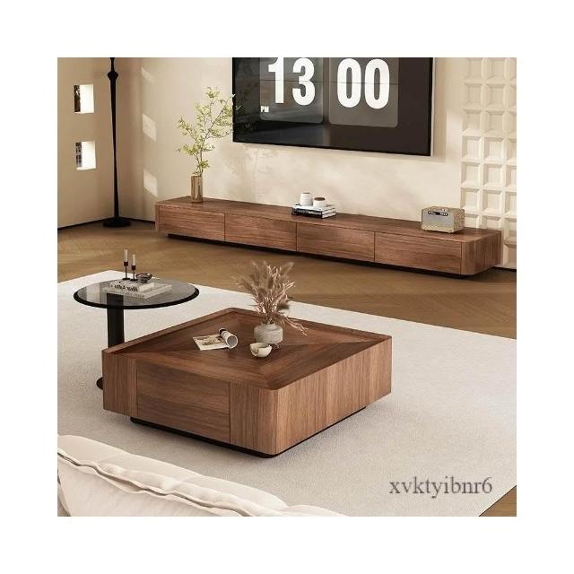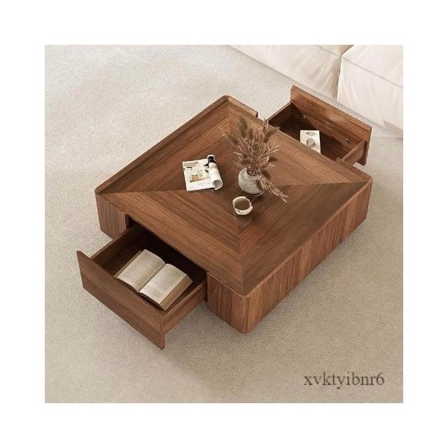 ✨廠家直銷✨ 意式極簡茶幾桌子 北美黑胡桃實木茶几 方形收納桌子 北歐家具現代簡約小戶型茶几