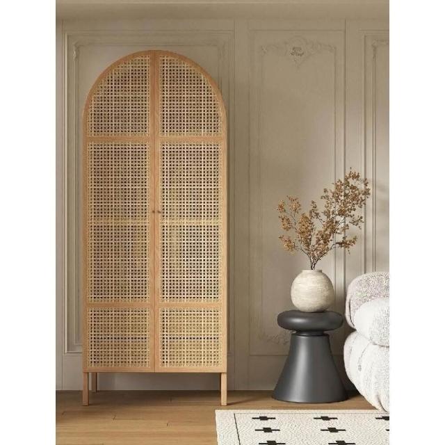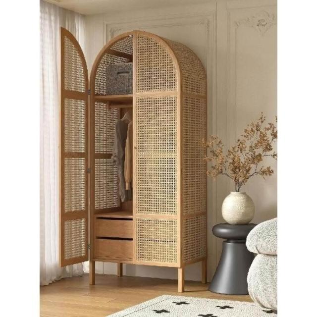 ✨ 廠家直銷✨ 藤編衣櫃 日式實木衣櫃 侘寂風設計師款家用收納櫃 民宿酒店家用儲物衣櫥