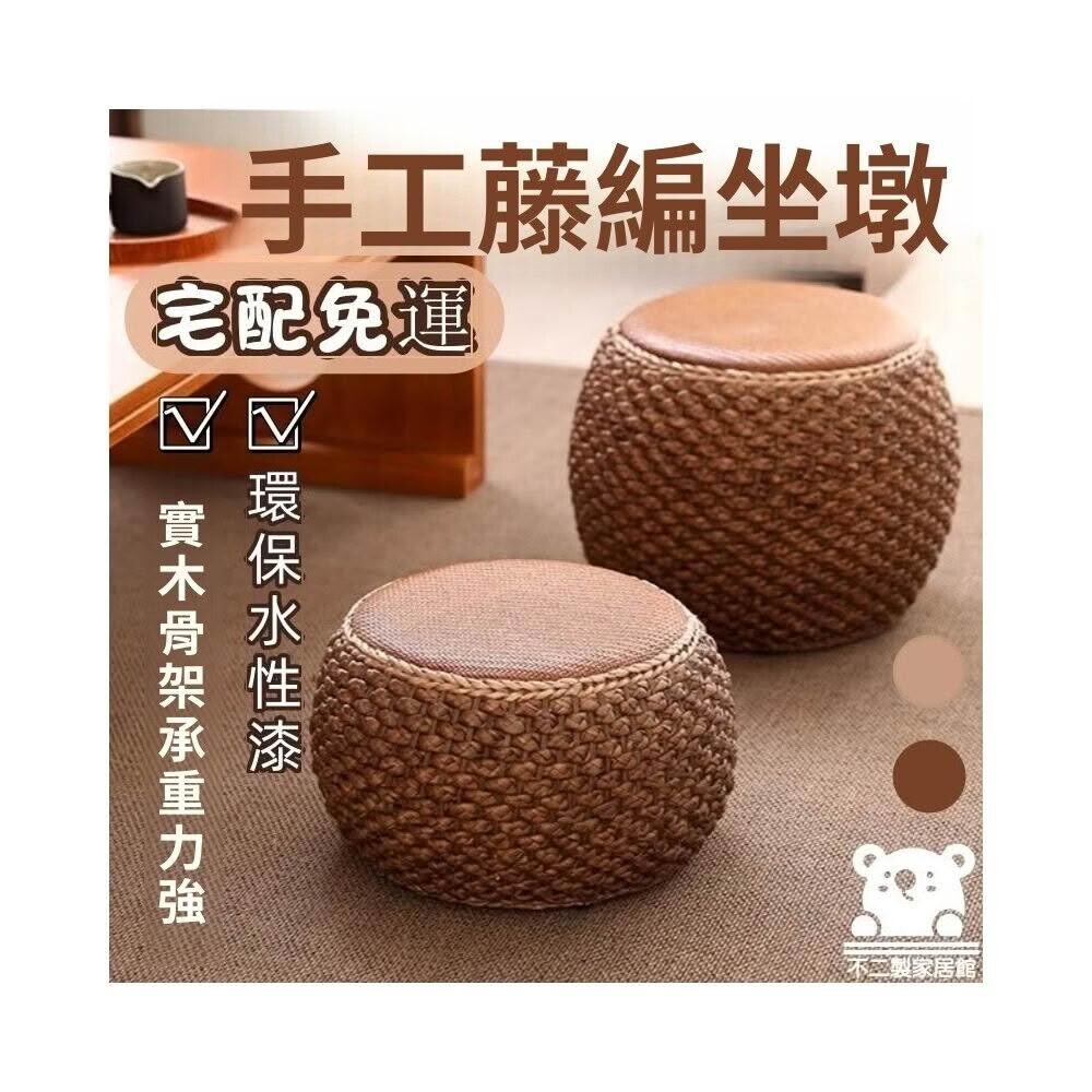 手工草編坐墩 宅配免運 創意圓凳 茶几凳 手工草編坐墩 天然手工編織蒲墩 藤編矮凳 家用客廳實木板凳 沙發凳LBH