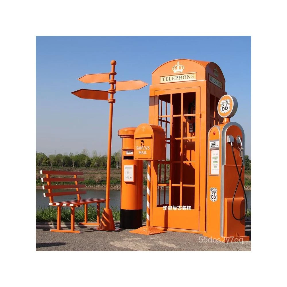 熱銷- 限時下殺🚛 複古鐵藝工藝品電話亭大型裝飾擺件 攝影道具 高顔值 書亭 電話亭 路牌 指示牌創意個性 歐式電話亭
