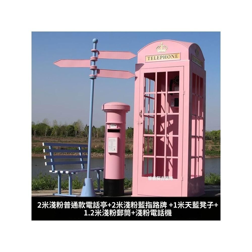 熱銷- 限時下殺🚛 複古鐵藝工藝品電話亭大型裝飾擺件 攝影道具 高顔值 書亭 電話亭 路牌 指示牌創意個性 歐式電話亭