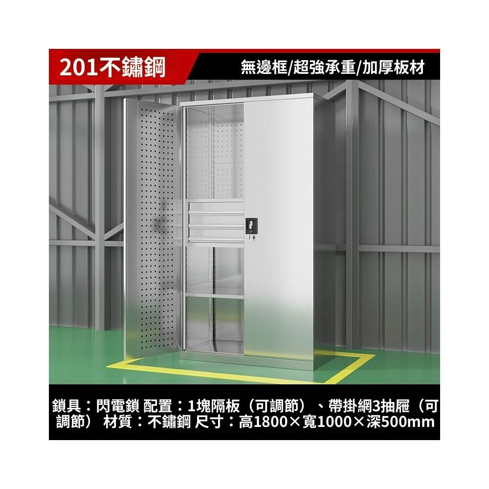304不銹鋼兩抽屜有掛網不銹鋼重型五金工具櫃工廠鐵皮櫃抽屜儲物